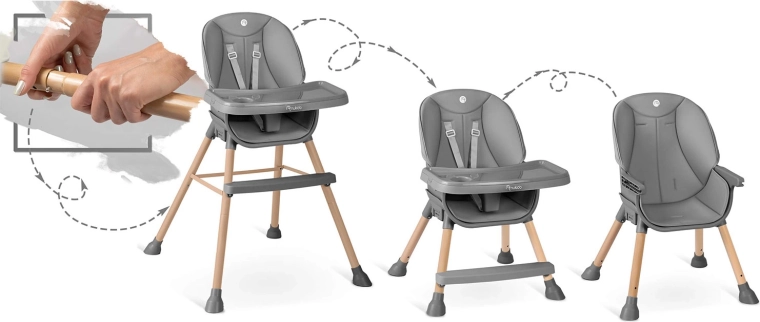 - 3v1: vysoká stolička, nízka stolička na hranie, sedenie pri stole bez pultíka