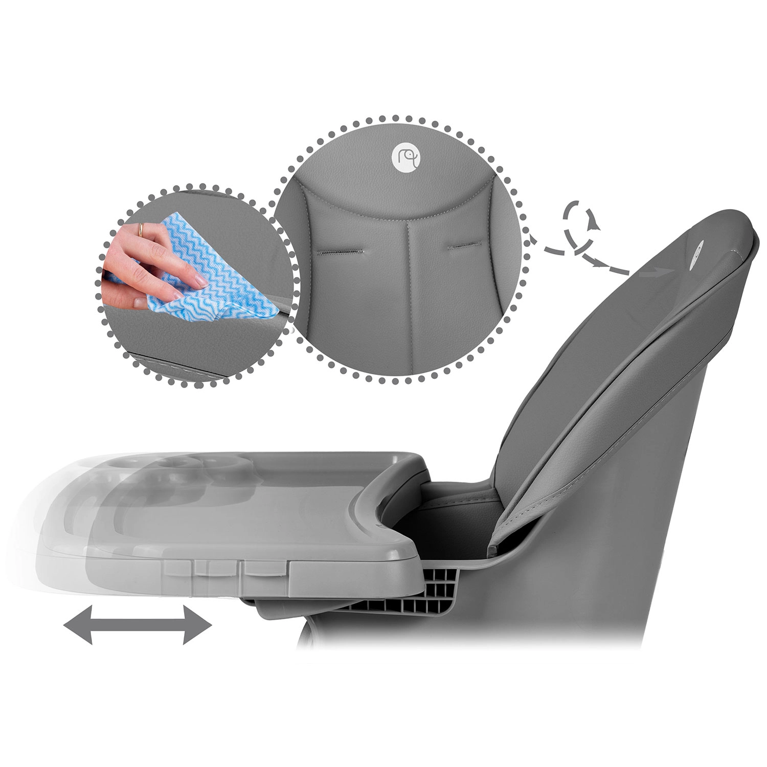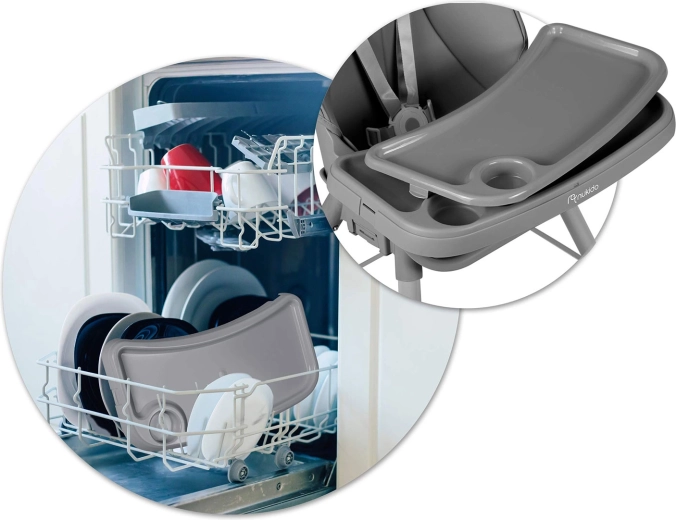Odnímateľná vložka pultíka so zvýšeným okrajom zadrží neporiadok a môžete ju umývať pod tečúcou vodou alebo v umývačke. Povrch sedadla je neabsorpčný.