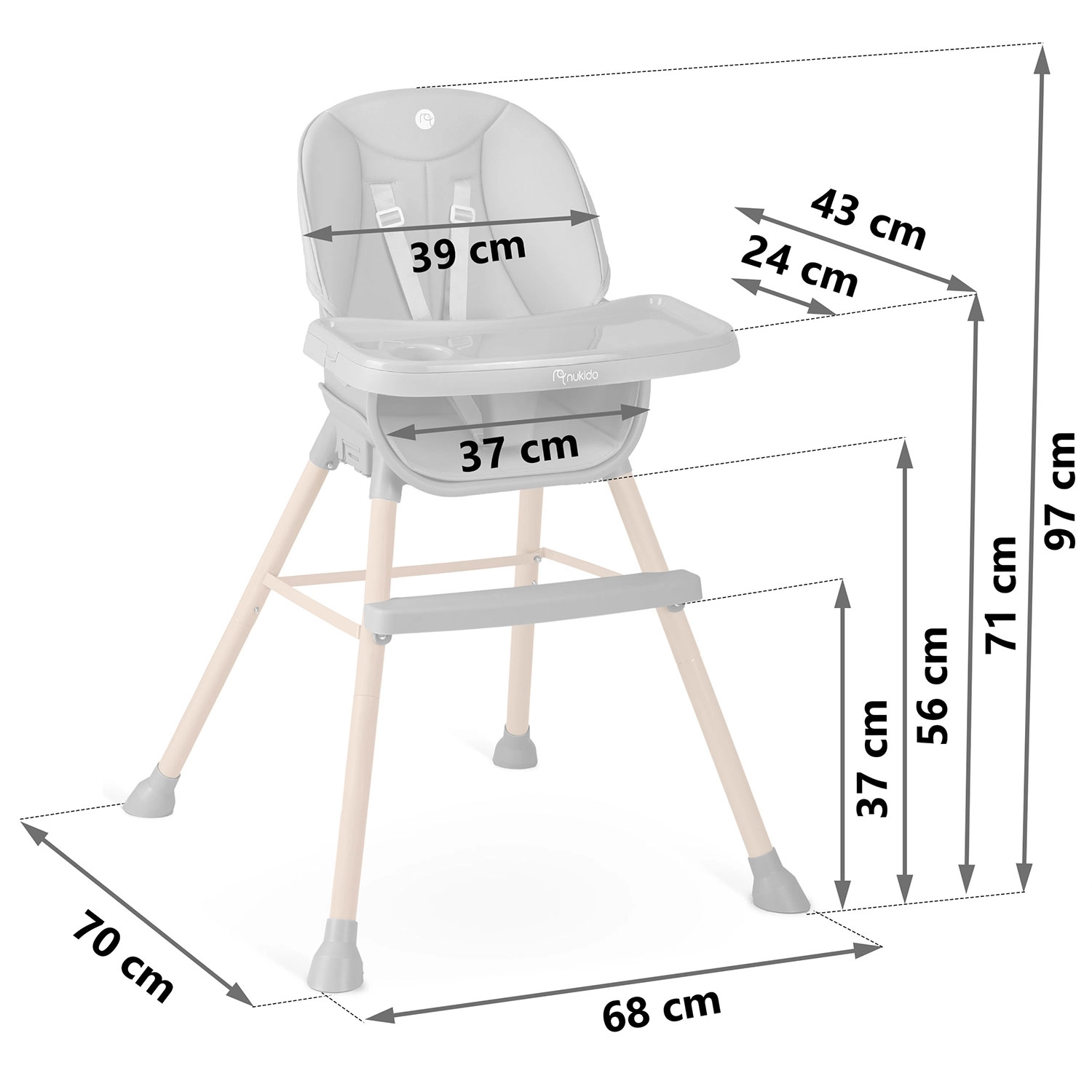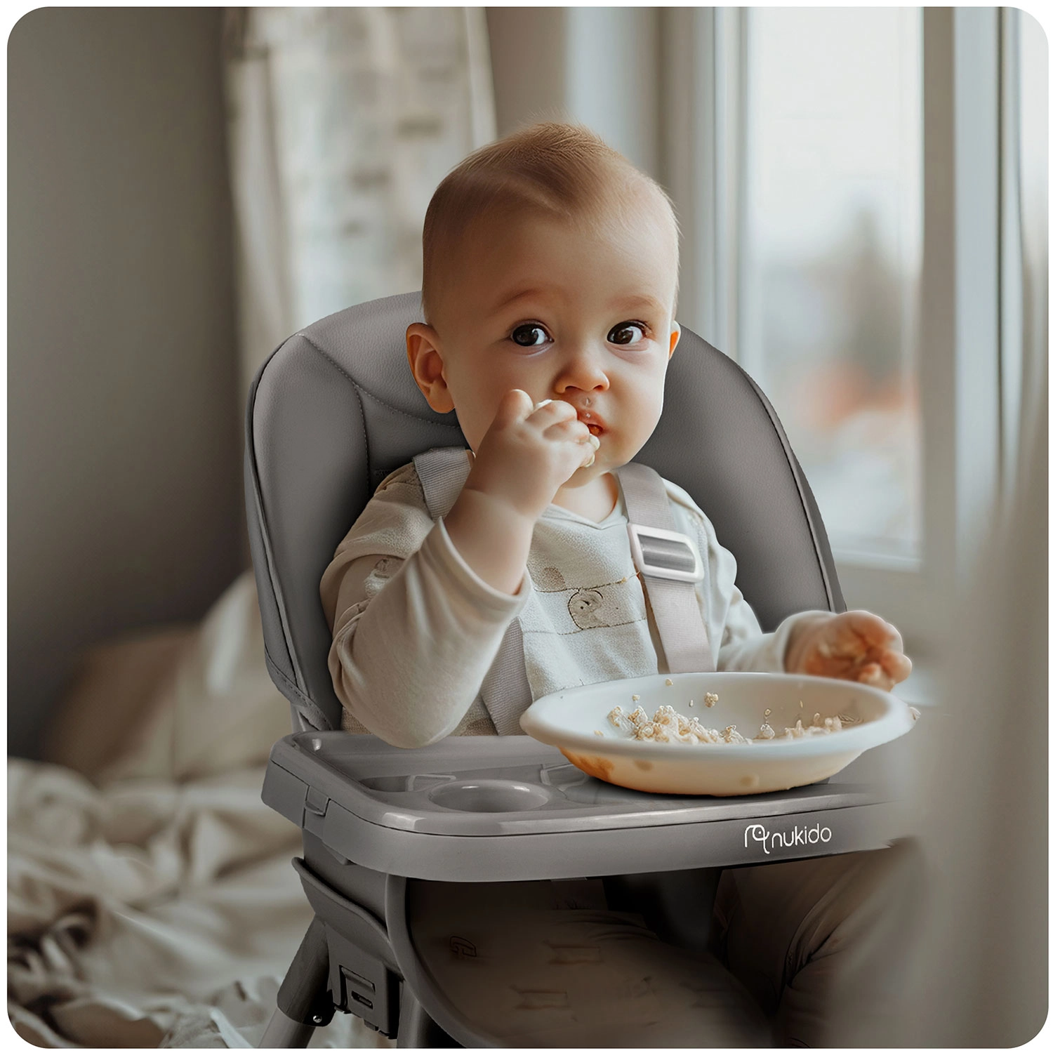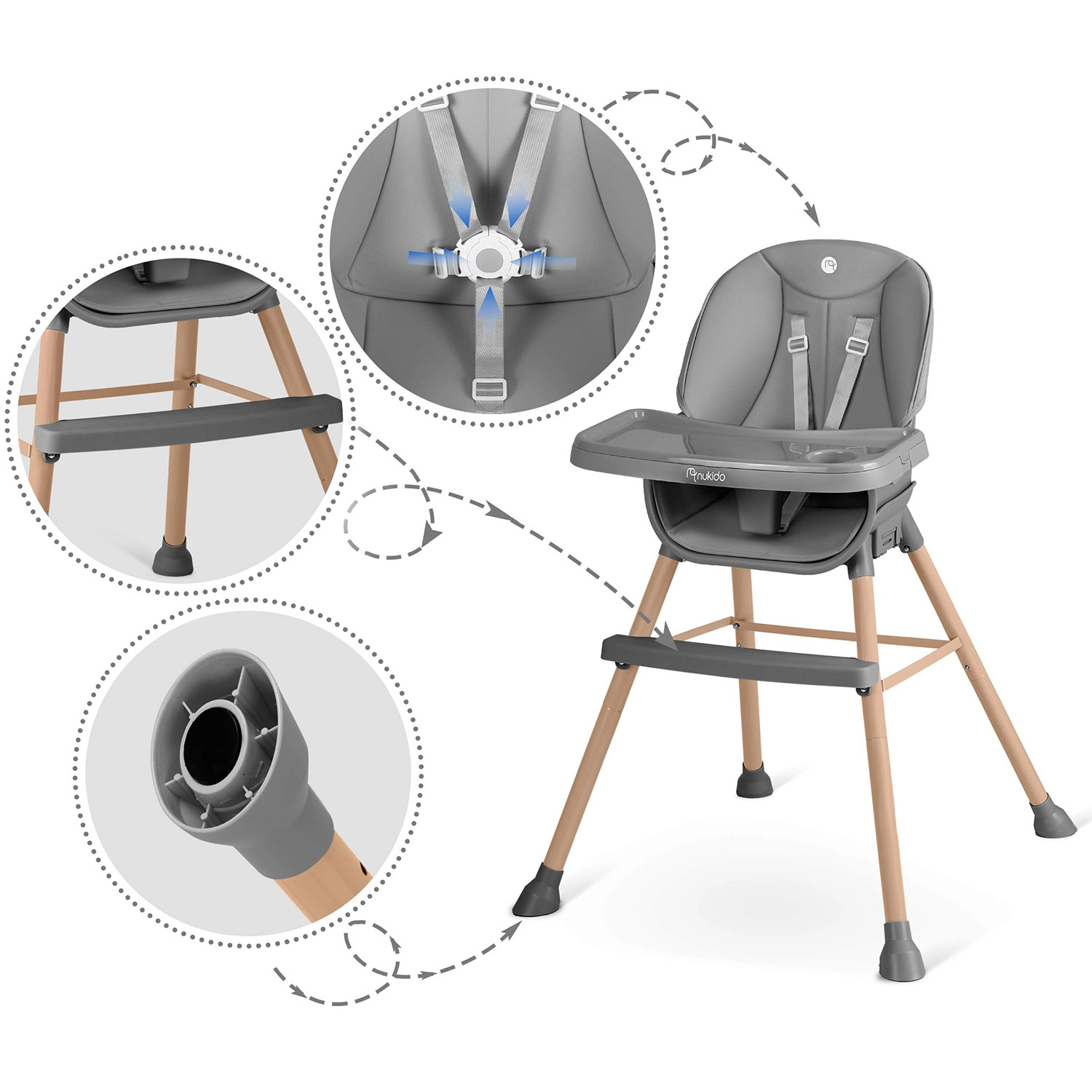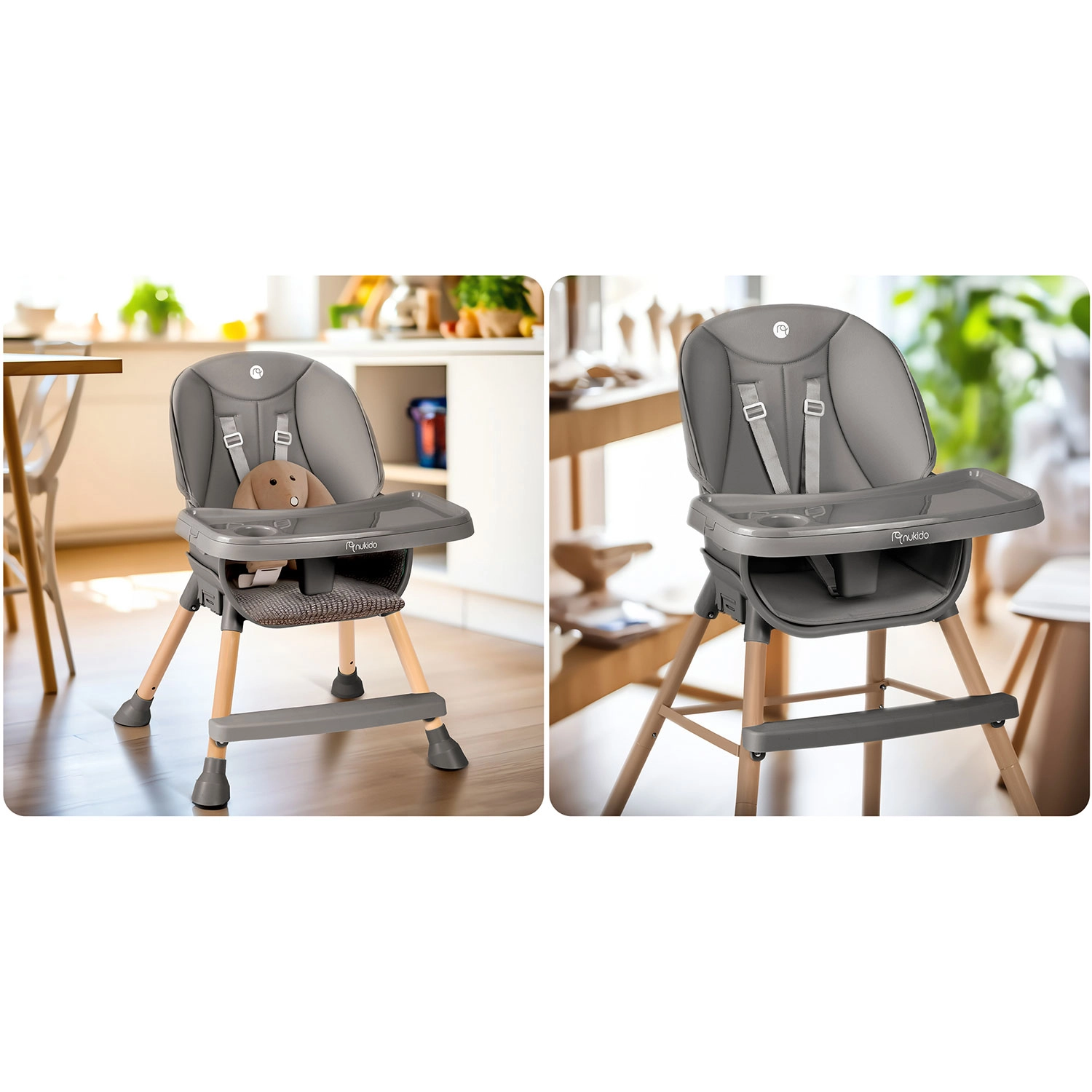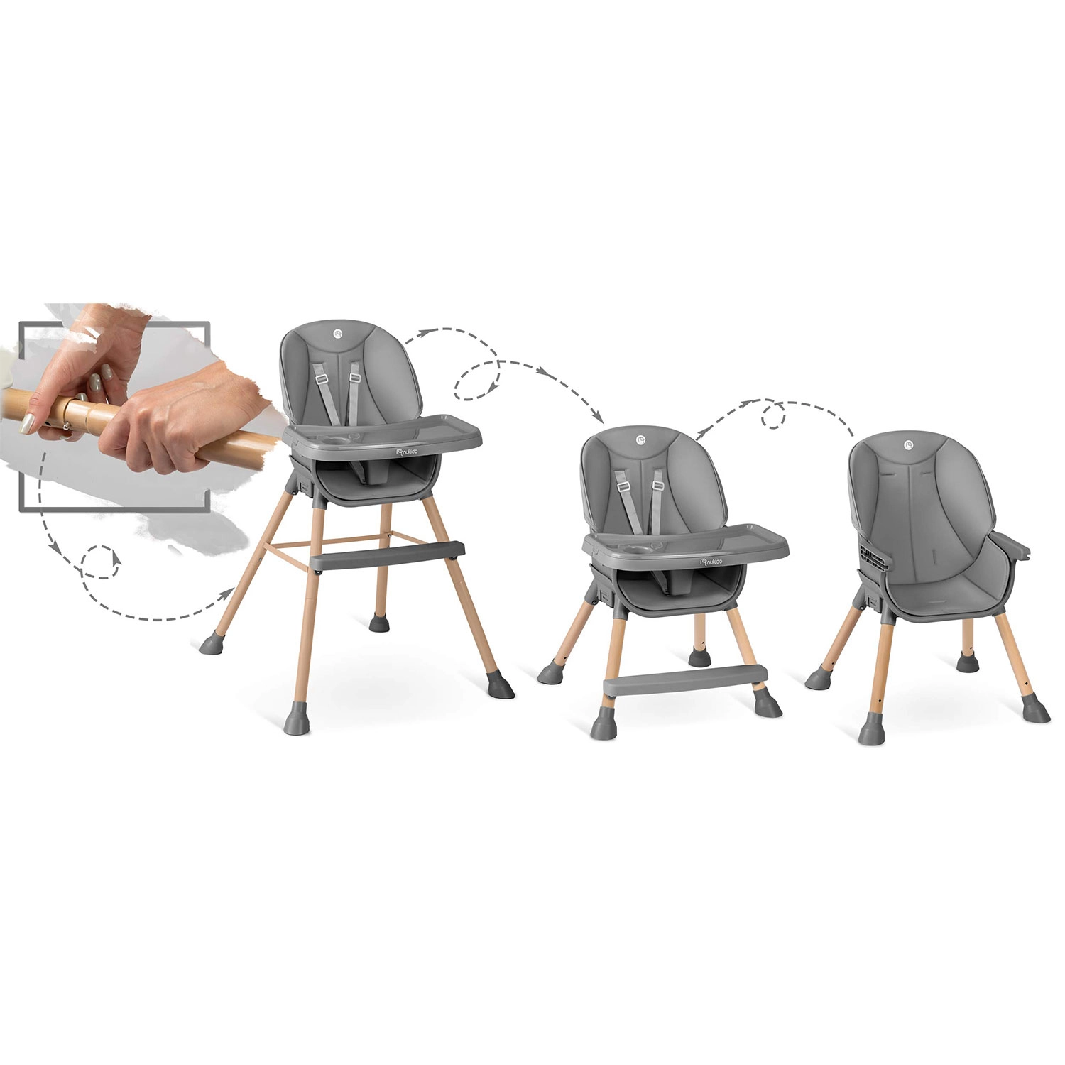 NUKIDO Tilo 3v1 je multifunkčná detská stolička, ktorá kombinuje pohodlie, bezpečnosť a jednoduchú údržbu. Vďaka premyslenému dizajnu ju ľahko prispôsobíte rôznym etapám vývoja dieťaťa a aktivitám – od stolovania až po hranie pri nízkom stolíku. Odnímateľný pultík so zvýšeným okrajom a vložkou uľahčuje každodenné upratovanie, zatiaľ čo mäkké čalúnenie z materiálu odolného voči nečistotám stačí len utrieť.