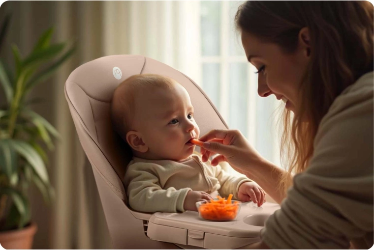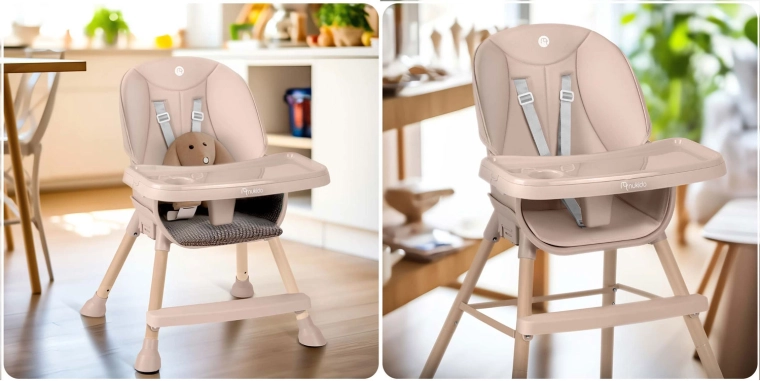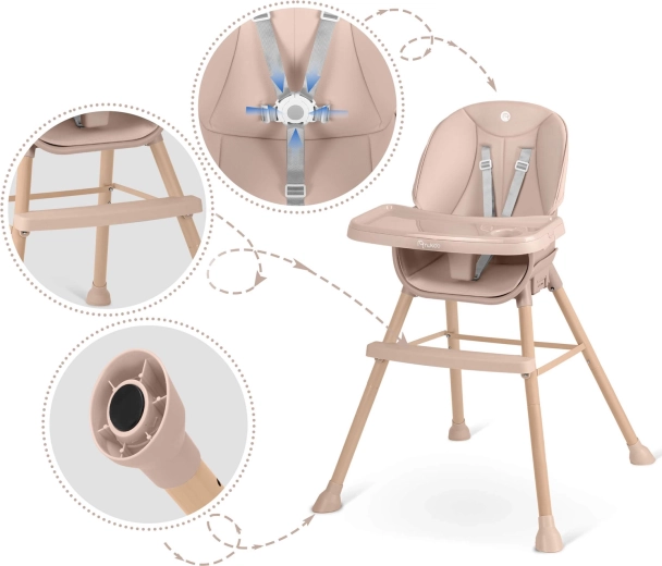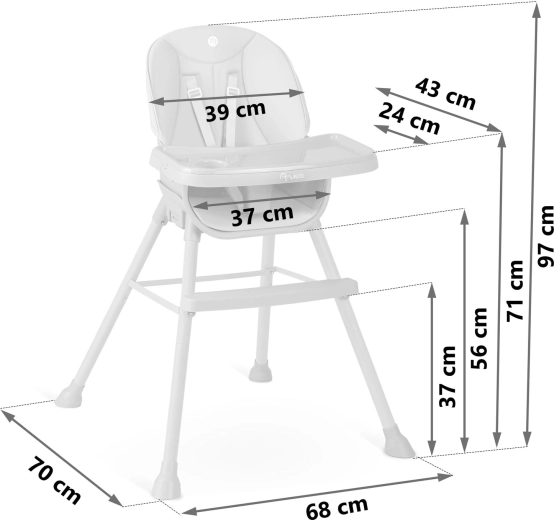 Praktické detaily robia z Tilo skvelú voľbu na každodenné používanie: nenasiakavé čalúnenie stačí utrieť vlhkou handričkou, 5-bodové pásy držia dieťa bezpečne na mieste a pevná oceľová nohová konštrukcia s protišmykovými koncovkami zaisťuje stabilitu na rôznych povrchoch. Ideálne na jedenie, kreslenie, stavenie kociek aj prvé samostatné čítanie.