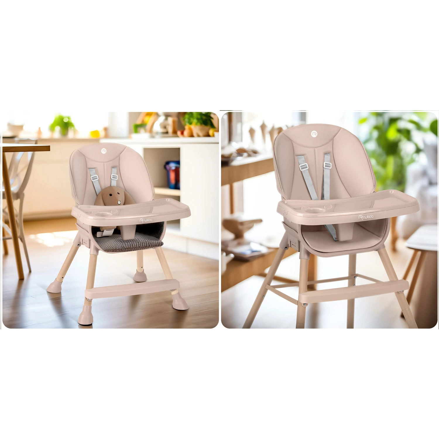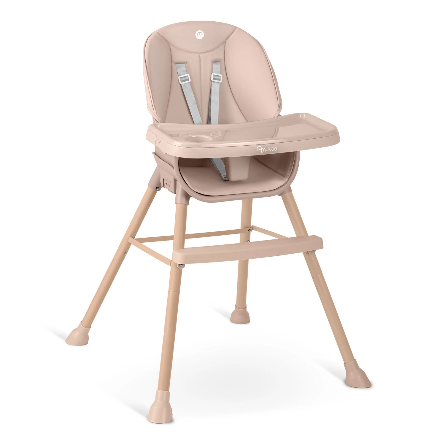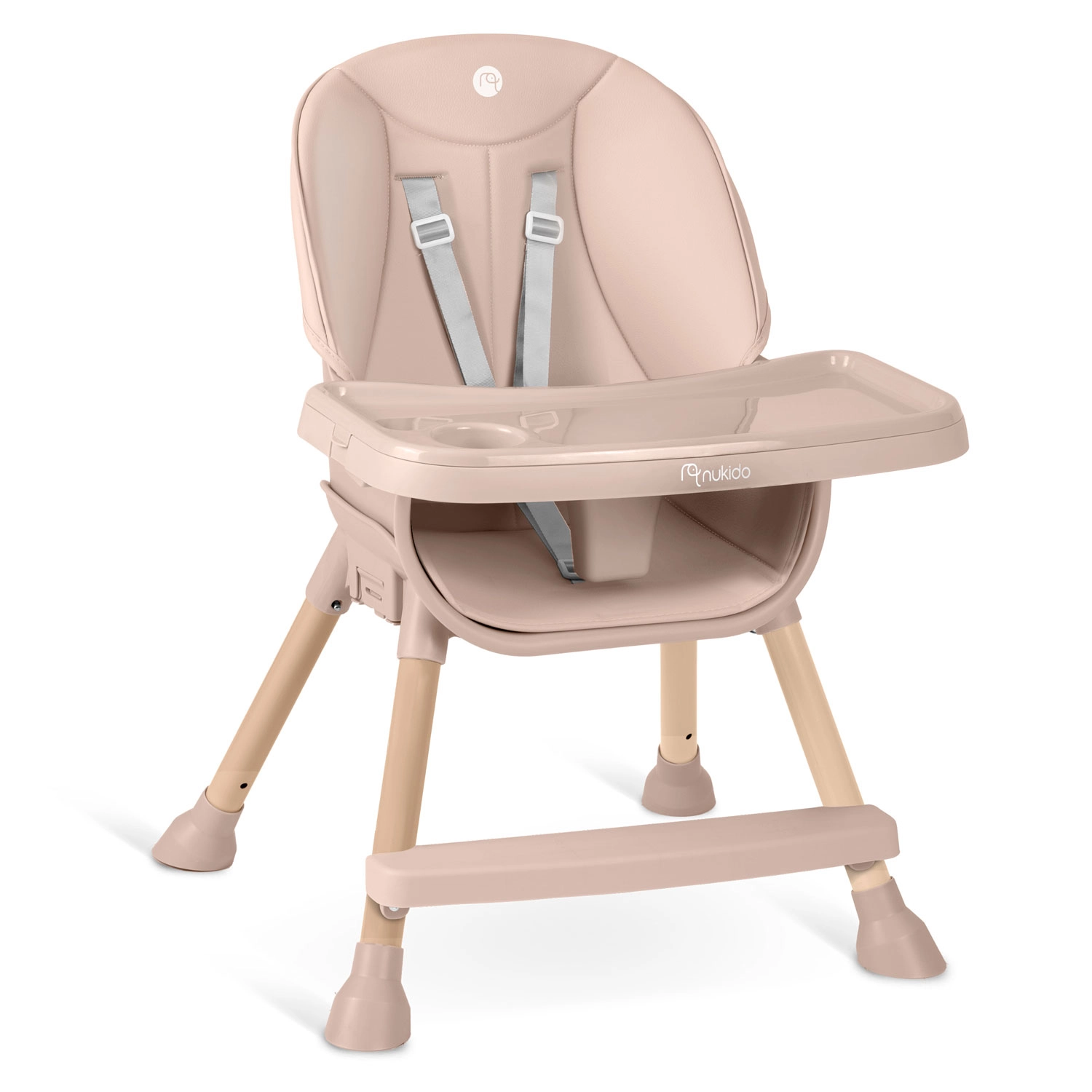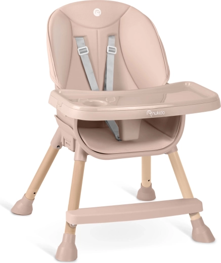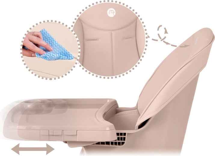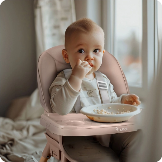 NUKIDO Tilo je všestranné detské kŕmiace kreslo 3v1, ktoré ľahko premeníte z vysokej jedálenskej stoličky na nízku stoličku pre batoľa alebo na samostatné sedátko. Vďaka plynulo nastaviteľnej vzdialenosti podnosu a jeho rýchlo odopínateľnej vložke udržíte poriadok behom chvíľky – vložku stačí zložiť a opláchnuť alebo vložiť do umývačky.