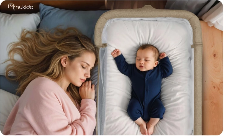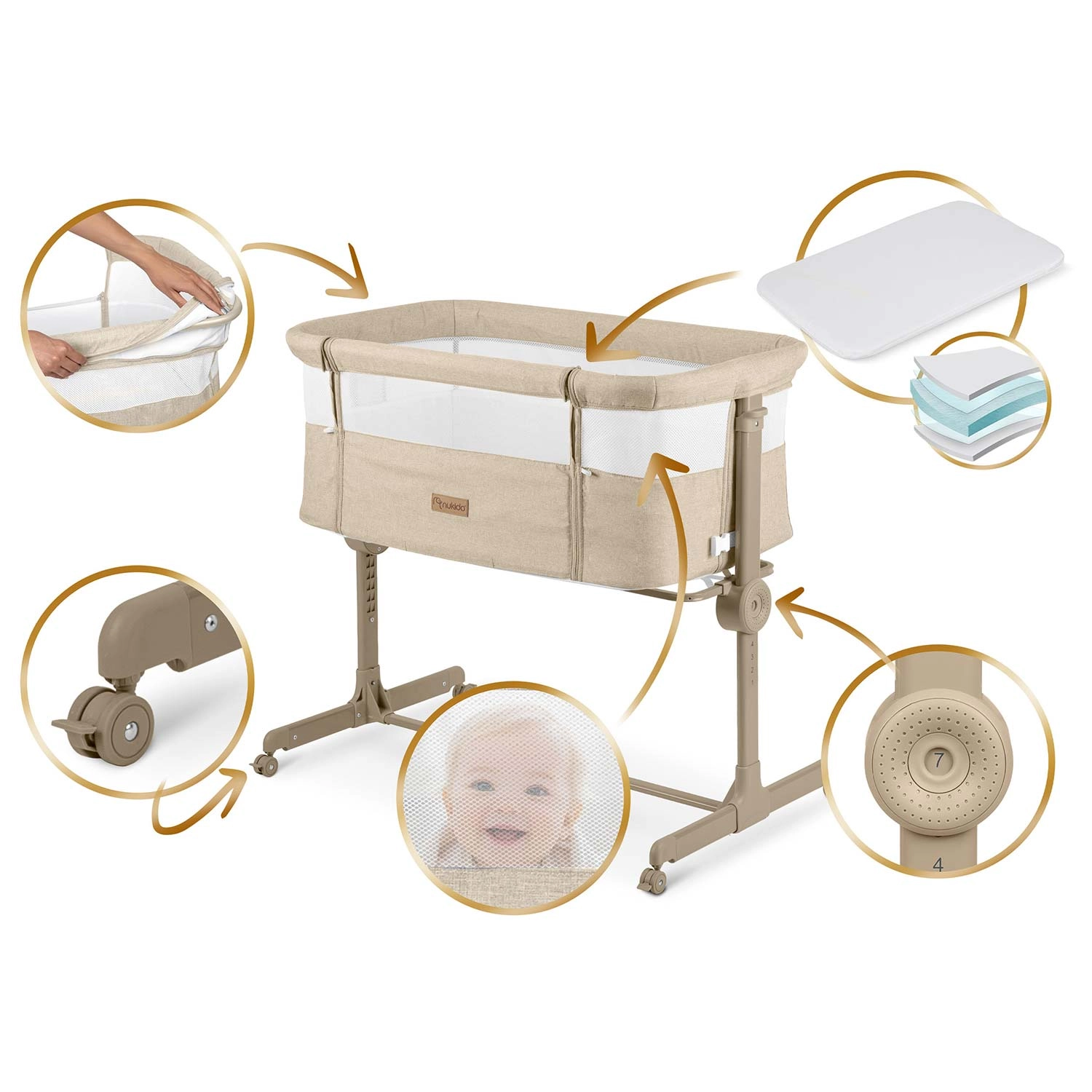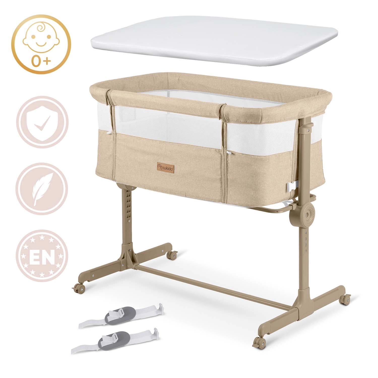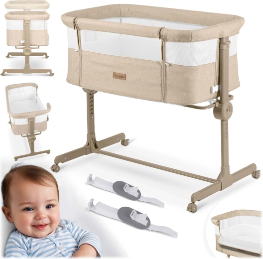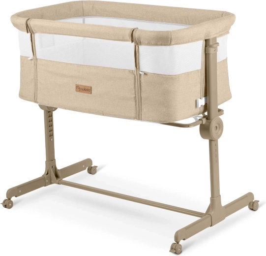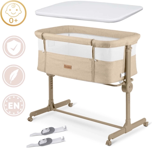 Praktická prístavná postieľka NUKIDO pre novorodencov spája bezpečné spoločné spanie s pohodlnou nočnou starostlivosťou. Ponúka nezávislé nastavenie výšky na oboch stranách (1–7), priedušné sieťované bočnice, skladaciu konštrukciu a 4 kolieska s brzdami. Súčasťou je matrac s prateľným poťahom a upevňovacie pásy na bezpečné prichytenie k posteli rodičov.