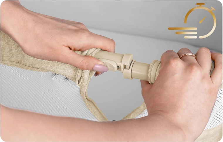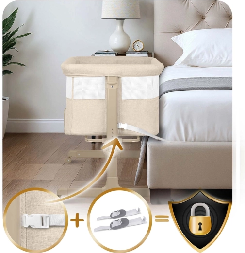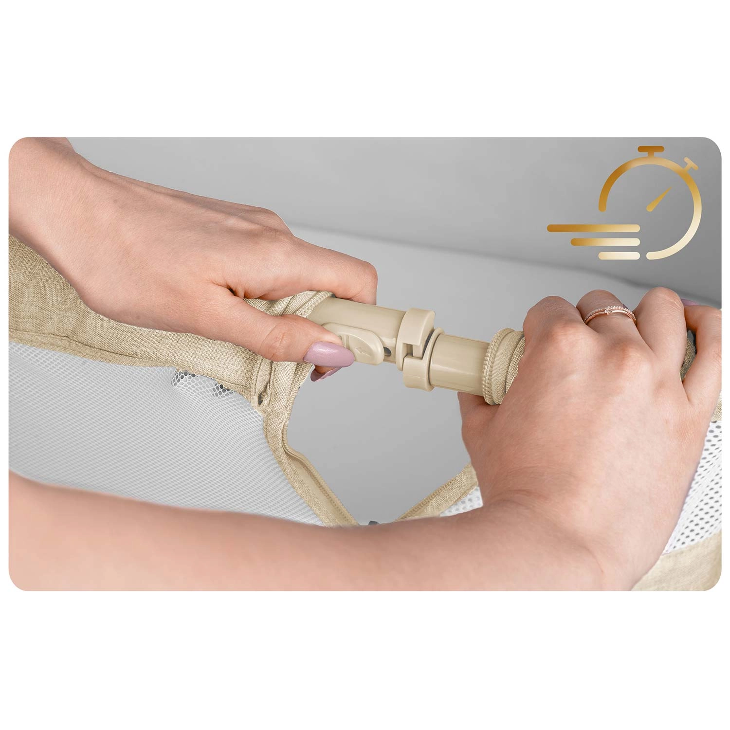 - Bezpečné pripevnenie k posteli vďaka univerzálnym popruhom – bez vŕtania a bez starostí.