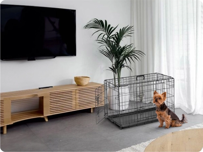 Predný aj bočný vstup uľahčí manipuláciu so psom a dovolí umiestniť klietku podľa dispozície bytu alebo kufra auta.