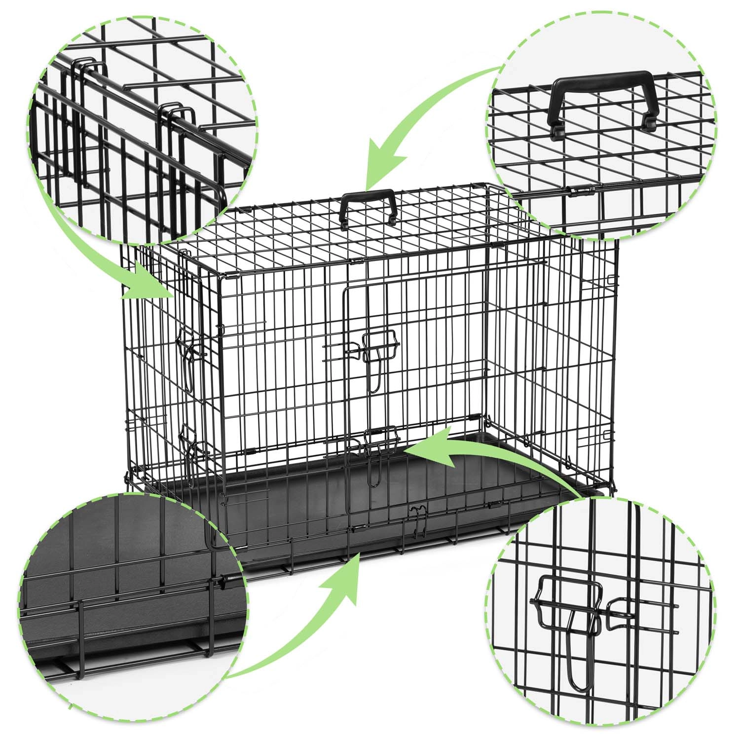 Táto skladacia kovová klietka pre psy veľkosti S je ideálna na každodenné používanie, výcvik aj cestovanie. Stabilná drôtená konštrukcia s práškovým lakom poskytuje výborné vetranie a prehľad, zatiaľ čo plastová výsuvná vaňa uľahčuje údržbu. Dvoje dvere s bezpečnými posuvnými zámkami umožnia pohodlný vstup a variabilné umiestnenie klietky v byte aj v kufri auta.