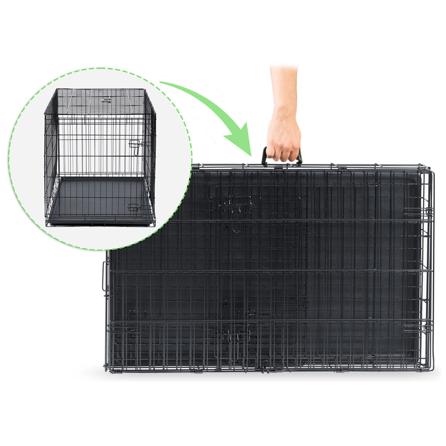 Počas niekoľkých sekúnd zložíte klietku do plochej podoby a ľahko ju prenesiete vďaka integrovanej rukoväti.
