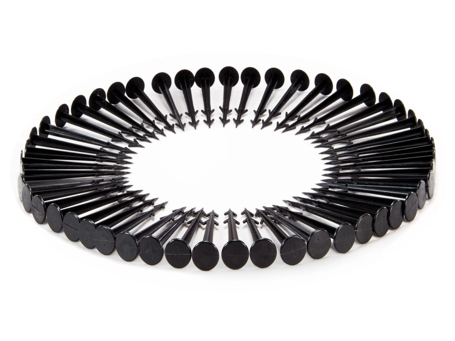 Okamžite pripravené na inštaláciu. Kolíky so širokou hlavou bezpečne zafixujú textíliu aj vo vetre.