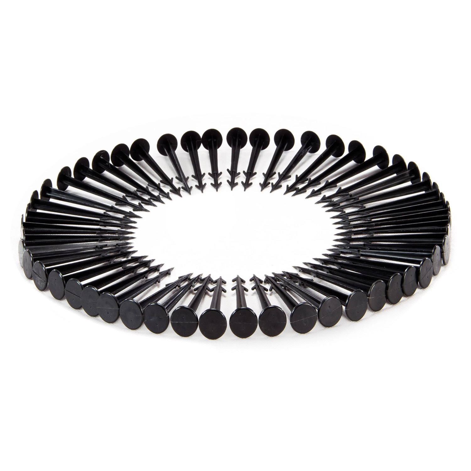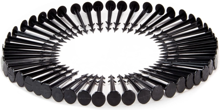 Súčasťou je 100 plastových kolíkov s háčikovými hrotmi a širokou hlavou pre rýchlu a stabilnú fixáciu textílie aj na nerovnom povrchu.