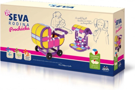 Stavebnica Seva Rodina – prechádzka je ideálnou voľbou pre malých staviteľov a staviteľky, ktorí milujú svet fantázie a hier na čerstvom vzduchu. Vďaka pestrým farbám a ľahko spájateľným dielikom deti rýchlo zostavia kočík pre bábiku, hojdačku, lavičku a ďalšie parkové doplnky.