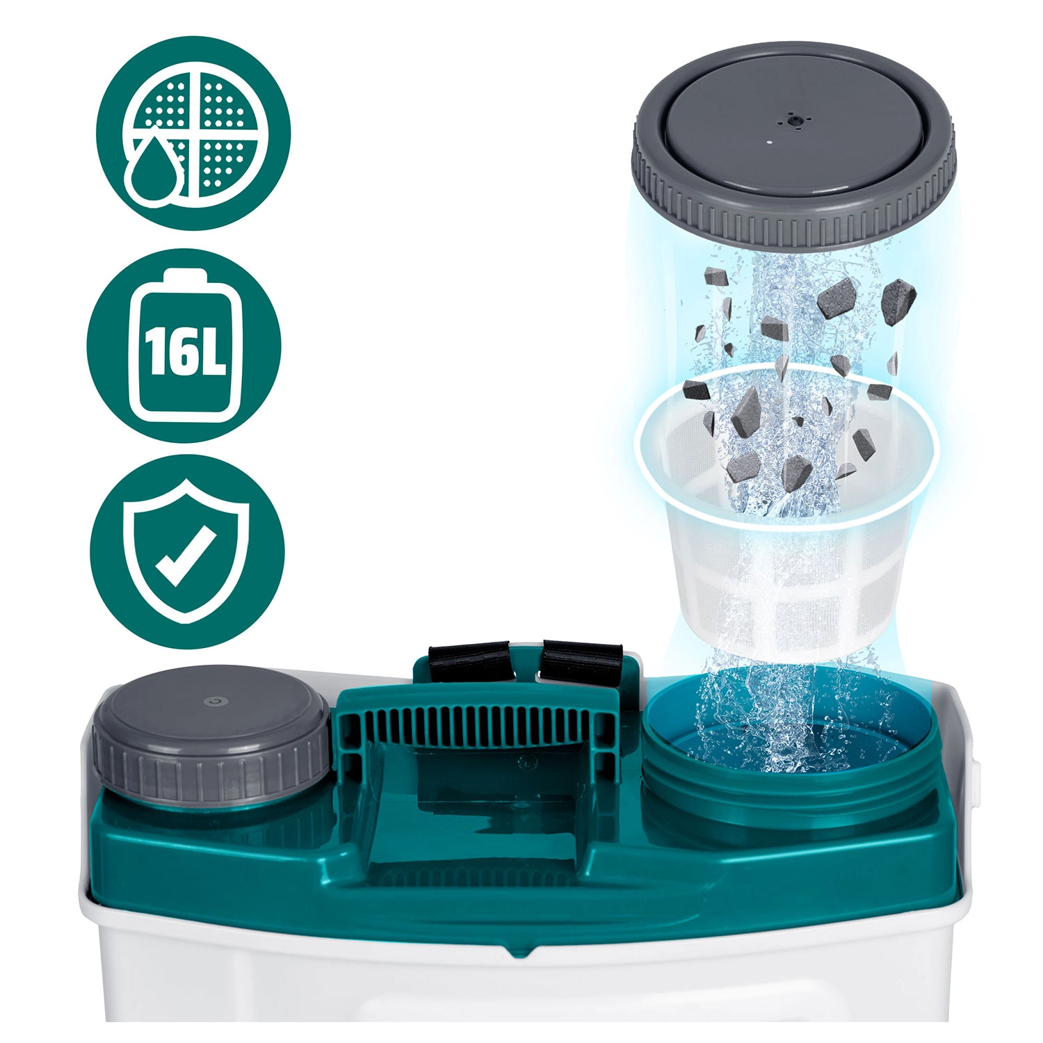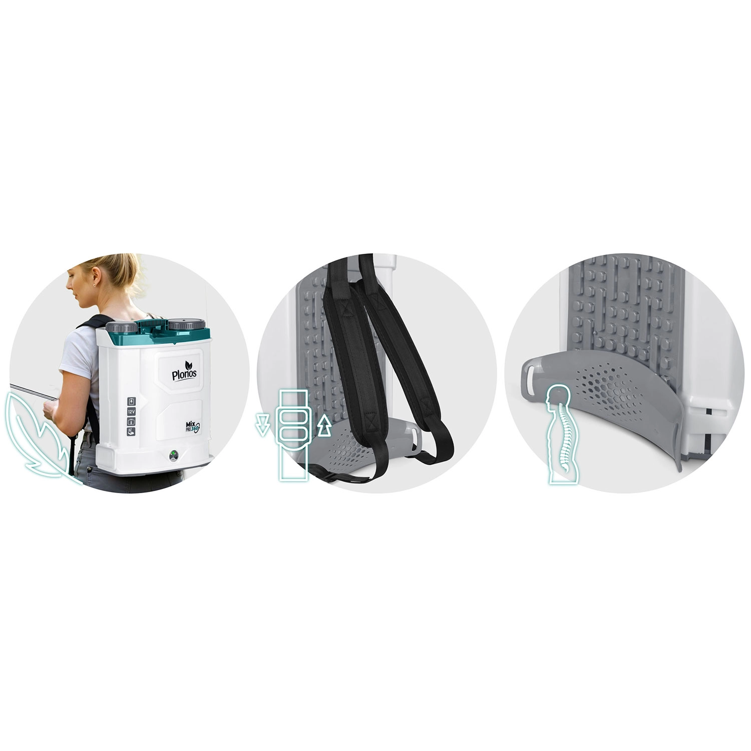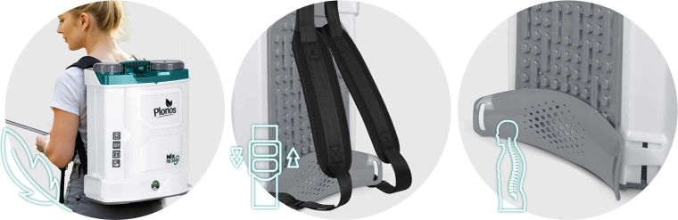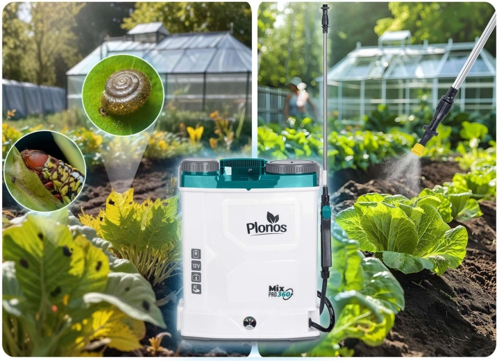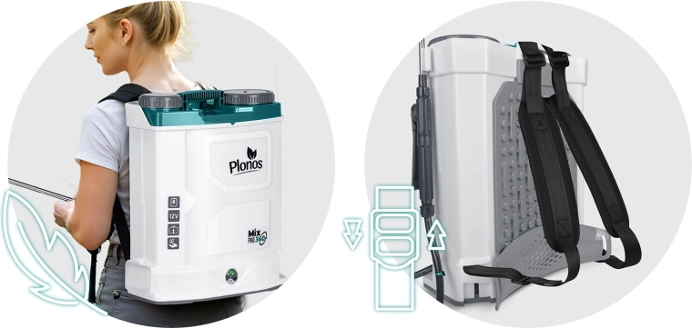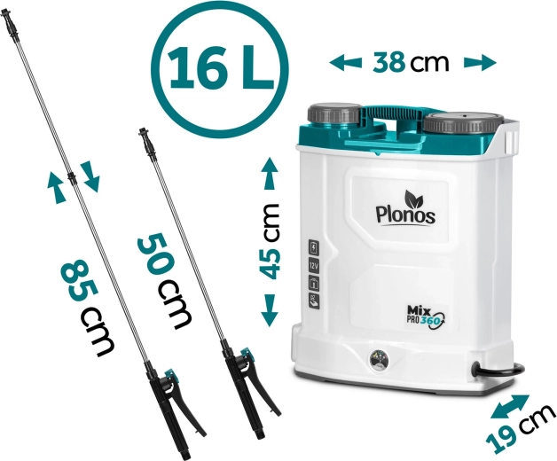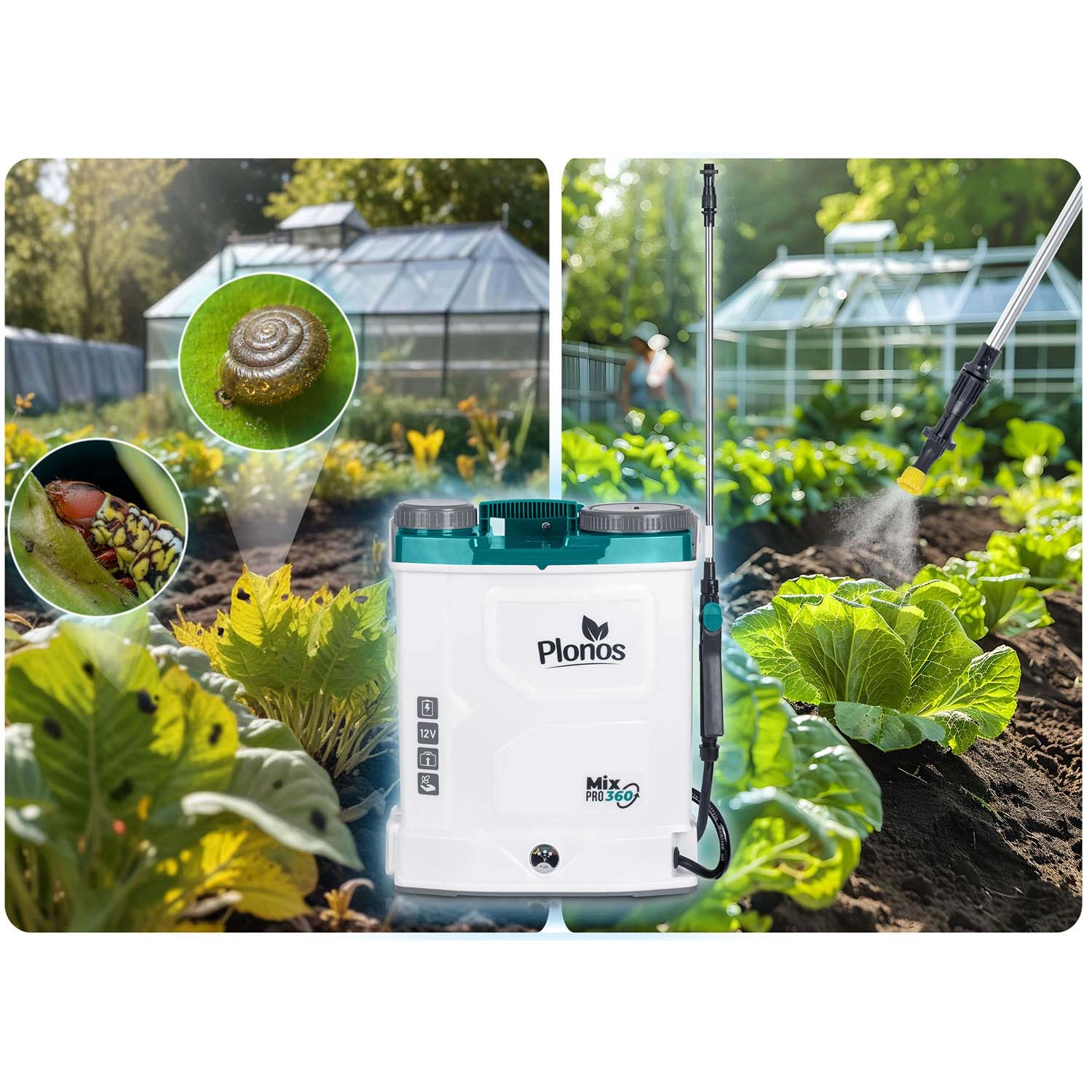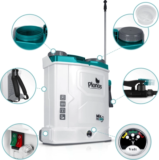 Postrekovač PLONOS Mix Pro 360 je spoľahlivý pomocník na ochranu a výživu rastlín na záhonoch, trávnikoch aj v sadoch. Vstavaný miešací systém udržiava pracovný roztok homogénny, čím zvyšuje účinnosť postreku a eliminuje upchávanie trysiek. 12V/8Ah batéria ponúka tichú prevádzku a výdrž až 9 hodín na jedno nabitie, takže pohodlne zvládnete aj väčšie plochy.