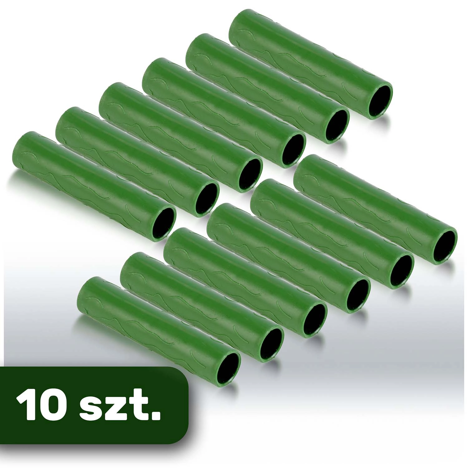 Praktické spojky na tyče s priemerom 11 mm v balení po 10 kusoch. Umožňujú rýchle predĺženie opôr, tvorbu priestorových konštrukcií a jednoduché skladovanie. Univerzálne použitie pre bambusové, oceľové aj plastové tyče. Odolný materiál PE a pohodlné zelené prevedenie pre nenápadné začlenenie do záhrady.