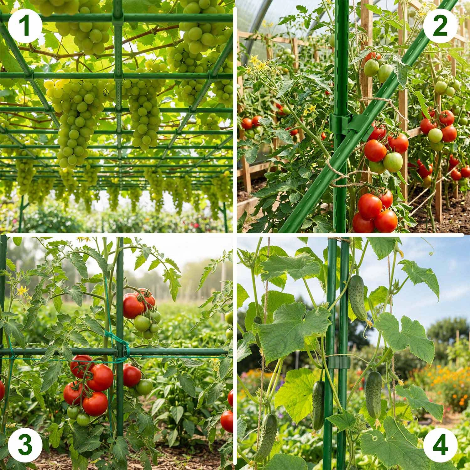 • Zvislá mrež pre rast a pnutie – ideálna do riadkových výsadieb aj skleníkov.