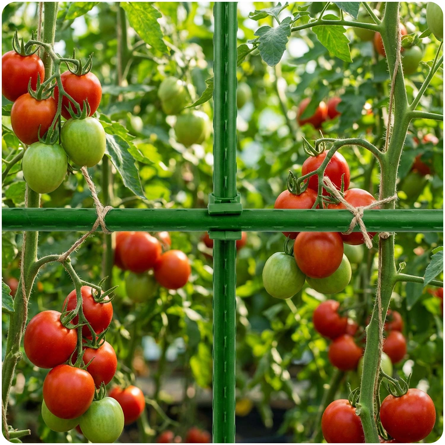 Praktická sada 10 ks zelených spojok typu 2 pre tyčky s priemerom 11 mm vám umožní rýchlo a pevne budovať opory pre paradajky a ďalšie popínavé rastliny. Vďaka otočnej konštrukcii 360° ľahko nastavíte uhol spojenia, vytvoríte stabilné konštrukcie a ušetríte miesto pri skladovaní. Univerzálny priemer pasuje na bambusové, oceľové aj plastové tyčky.