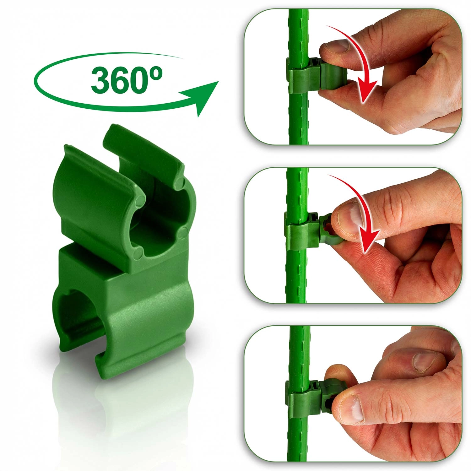 • Univerzálne použitie – kompatibilné s bambusovými, oceľovými aj plastovými tyčkami s priemerom 11 mm.