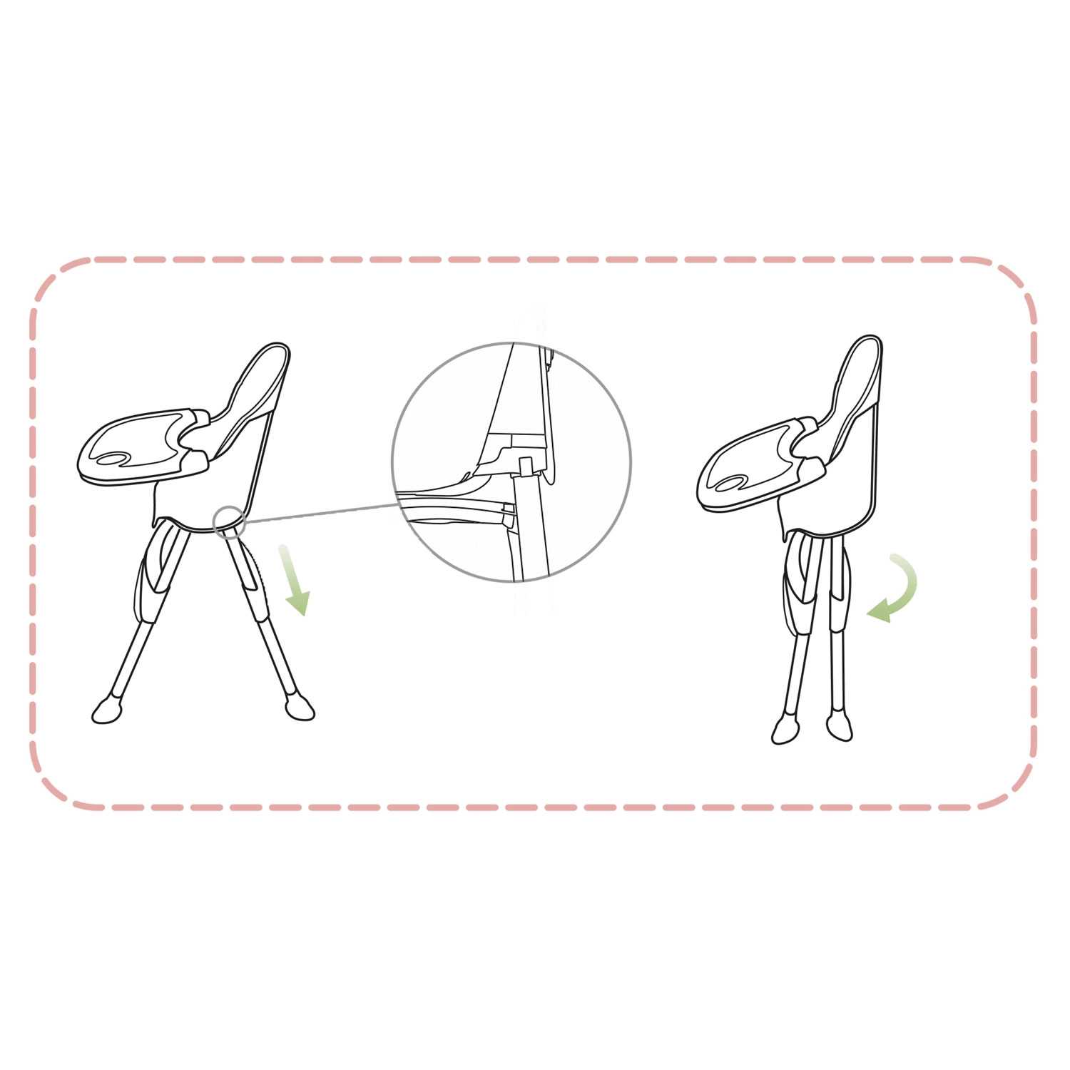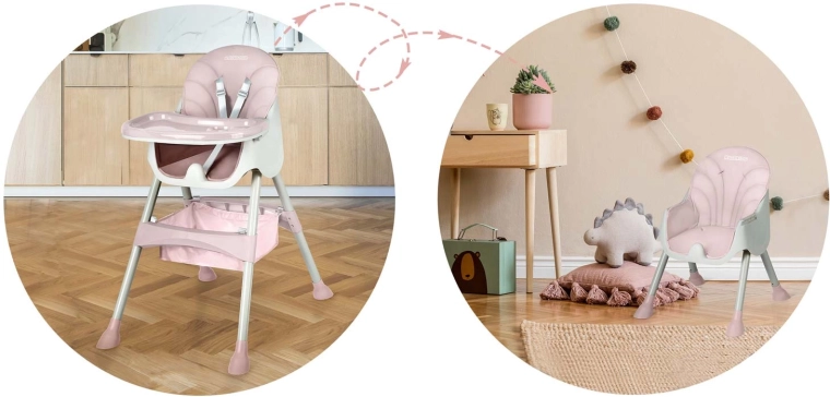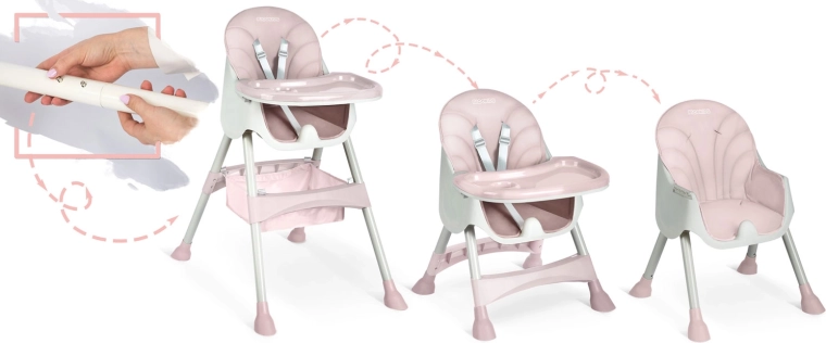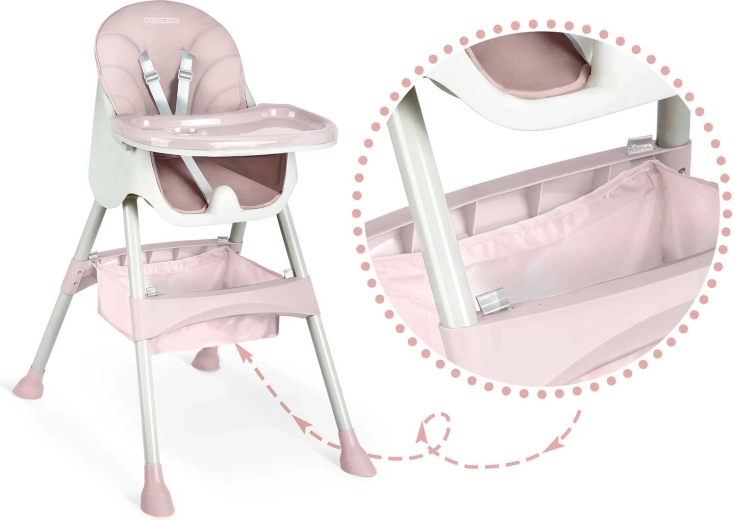 Stoličku ľahko zložíte do kompaktnej veľkosti, takže nezaberá miesto ani v menších bytoch. Tri úrovne nastavenia vzdialenosti pultíka umožnia ideálnu pozíciu pre rôzne vekové fázy dieťaťa. Praktický košík pod sedadlom pojme obrúsky, hračky aj podbradník, takže máte všetko po ruke.