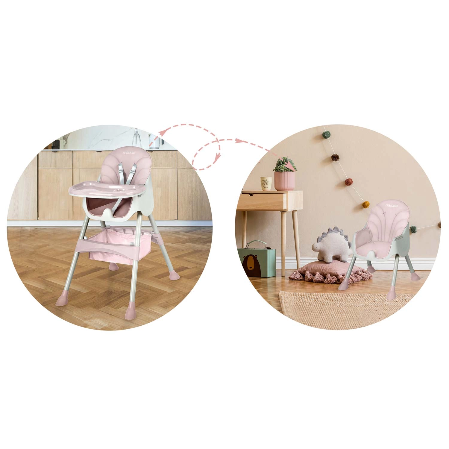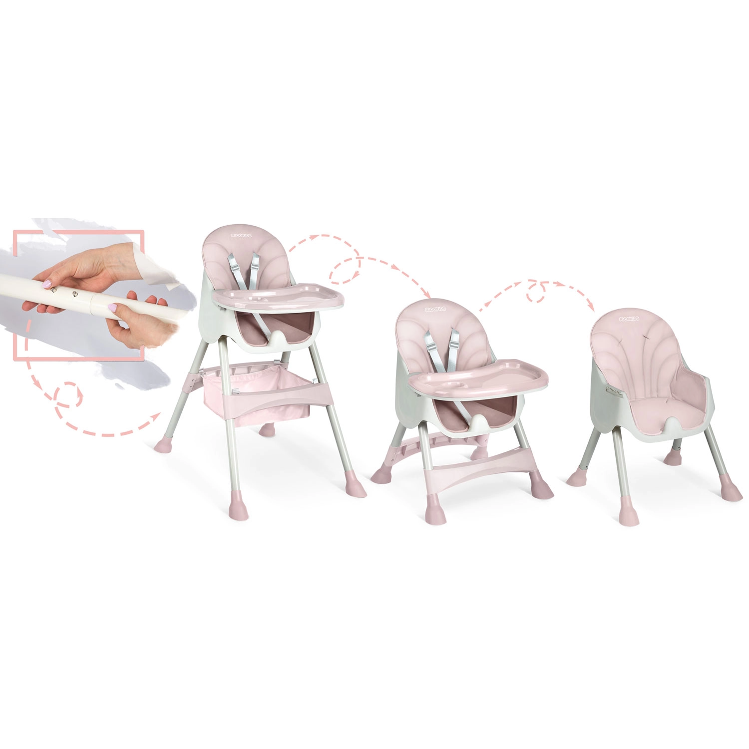 Štýlová a ultraľahká jedálenská stolička Milo pre bábätká a batoľatá ponúka 3v1 využitie, ľahké skladanie pre úsporu miesta a odnímateľný, nastaviteľný pultík so zvýšenými okrajmi. Vďaka 5-bodovému bezpečnostnému pásu a protisklzovým nožičkám je sedenie dieťaťa pri kŕmení aj hraní maximálne bezpečné. Povrchy sa rýchlo čistia – stačí ich utrieť, prípadne pultík umyť pod tečúcou vodou. Súčasťou je aj praktický úložný košík.