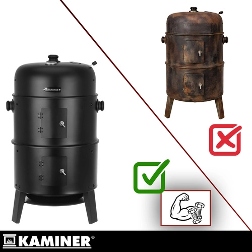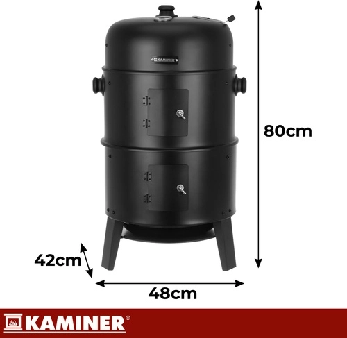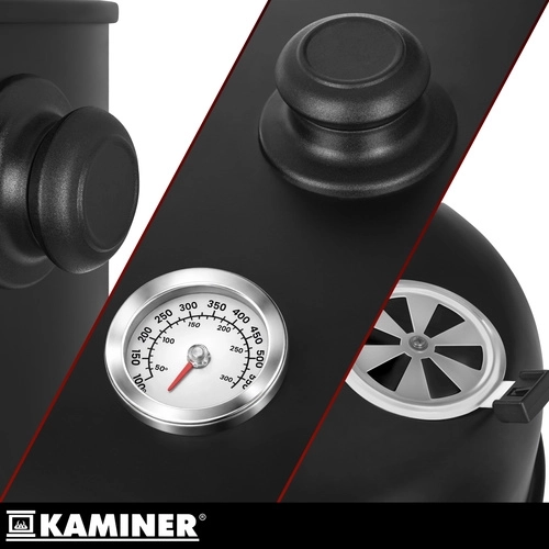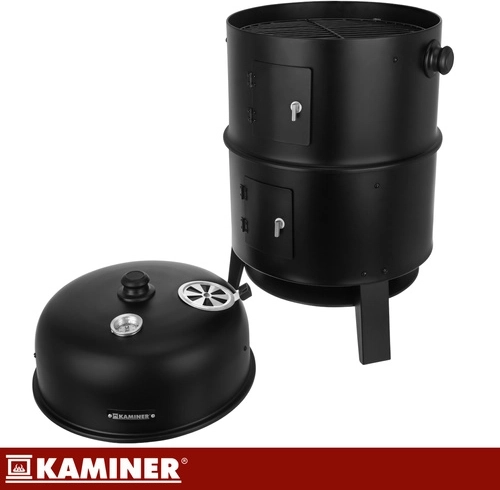 Objavte univerzálny gril KAMINER 3v1, ktorý kombinuje grilovanie, údenie a ohnisko v jednom. Vďaka teplomeru v pokrievke, regulácii prívodu vzduchu a dvom chrómovaným roštom 38 cm pripravíte šťavnaté steaky aj voňavé údeniny s minimom námahy. 8 háčikov na údenie, odolná oceľová konštrukcia 0,9 mm a ľahké čistenie z neho robia ideálnu voľbu pre každé BBQ.