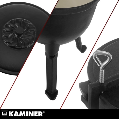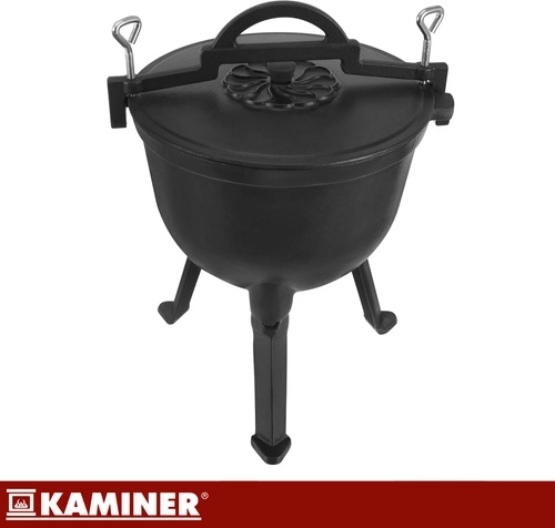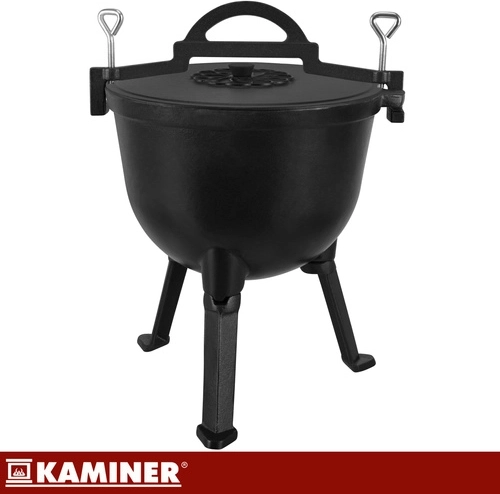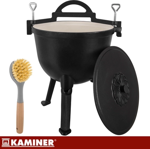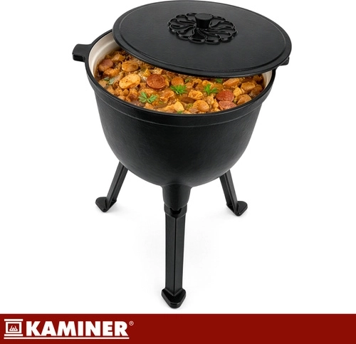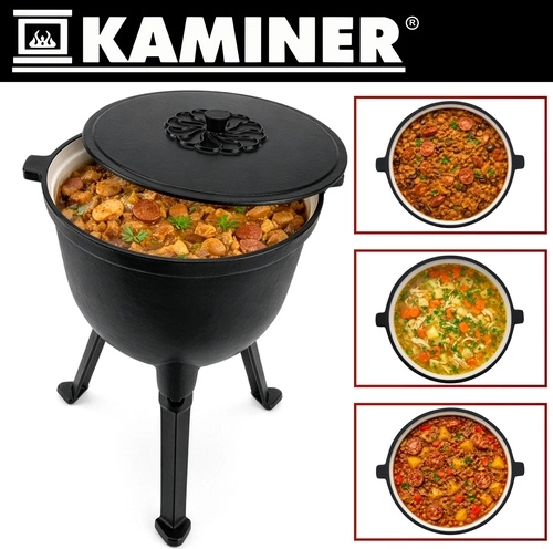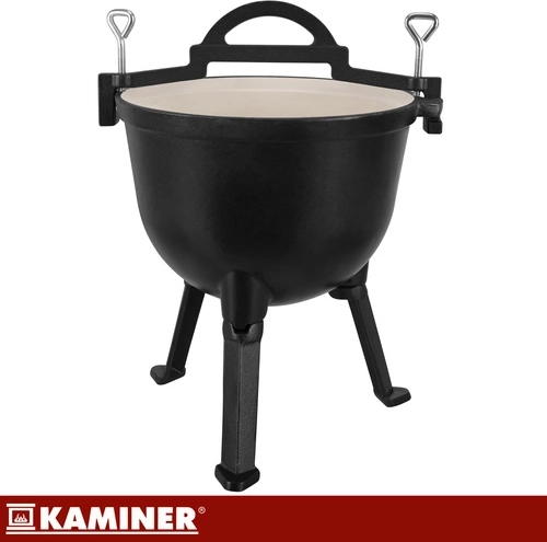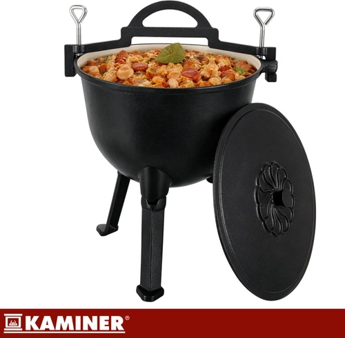 Robustná liatinová konštrukcia kotlíka KAMINER odolá vysokým teplotám a dlhodobému používaniu. Smaltované vnútorné povrchy kotlíka aj pokrievky zjednodušujú údržbu – bez nutnosti pravidelného vypaľovania či olejovania. Vďaka objemu 10 l uvaríte výdatné porcie pre celú rodinu aj partiu priateľov.
