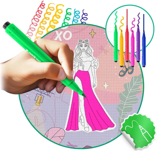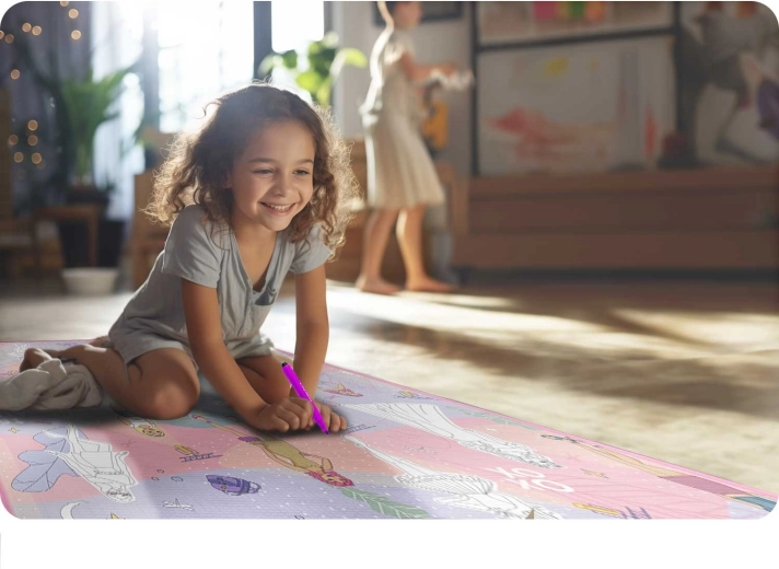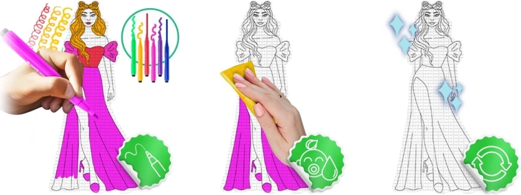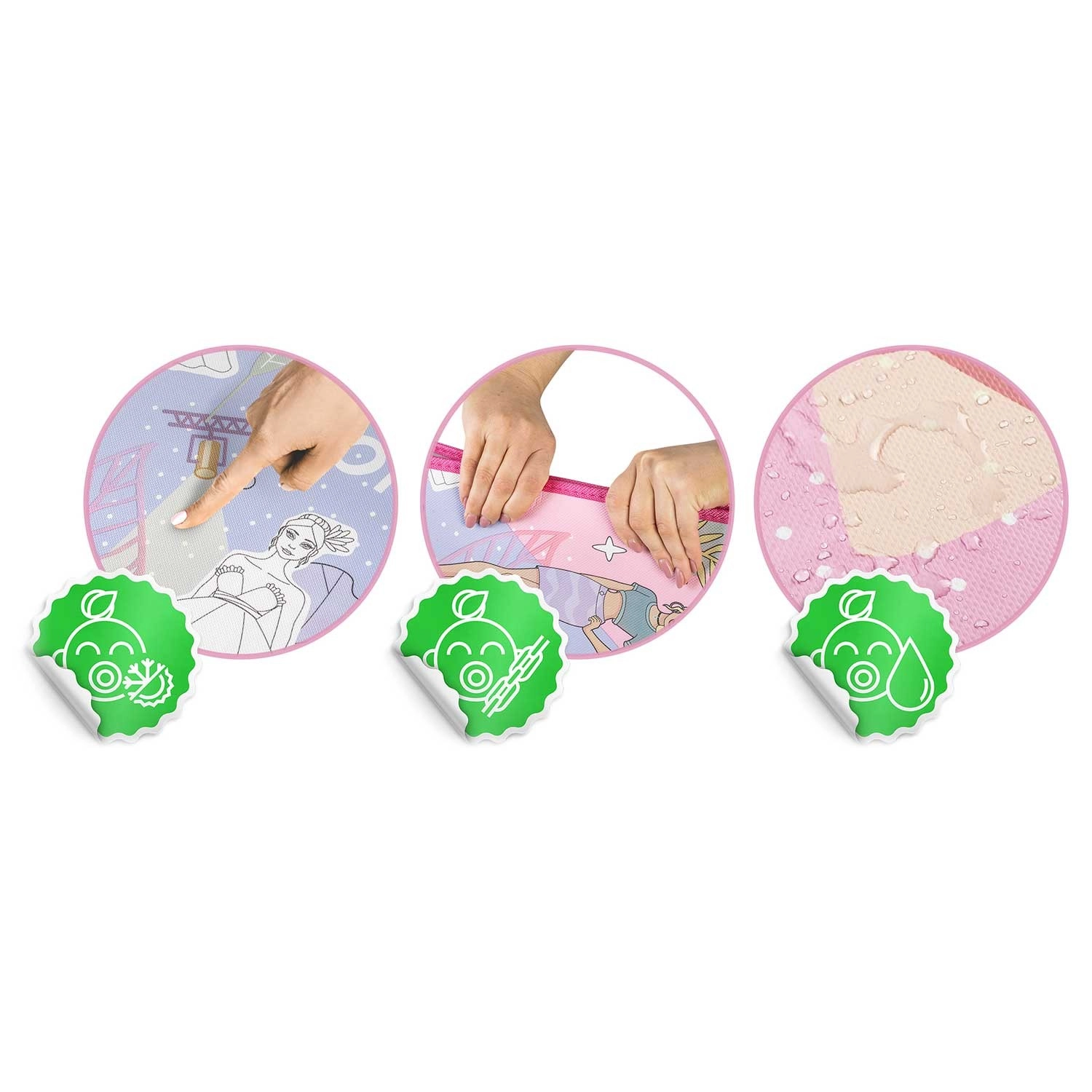 Špeciálny povrch podložky umožňuje kresliť znova a znova. Farby rýchlo schnú a dajú sa jednoducho zotrieť vlhkou handričkou – bez čistiacich prostriedkov.
