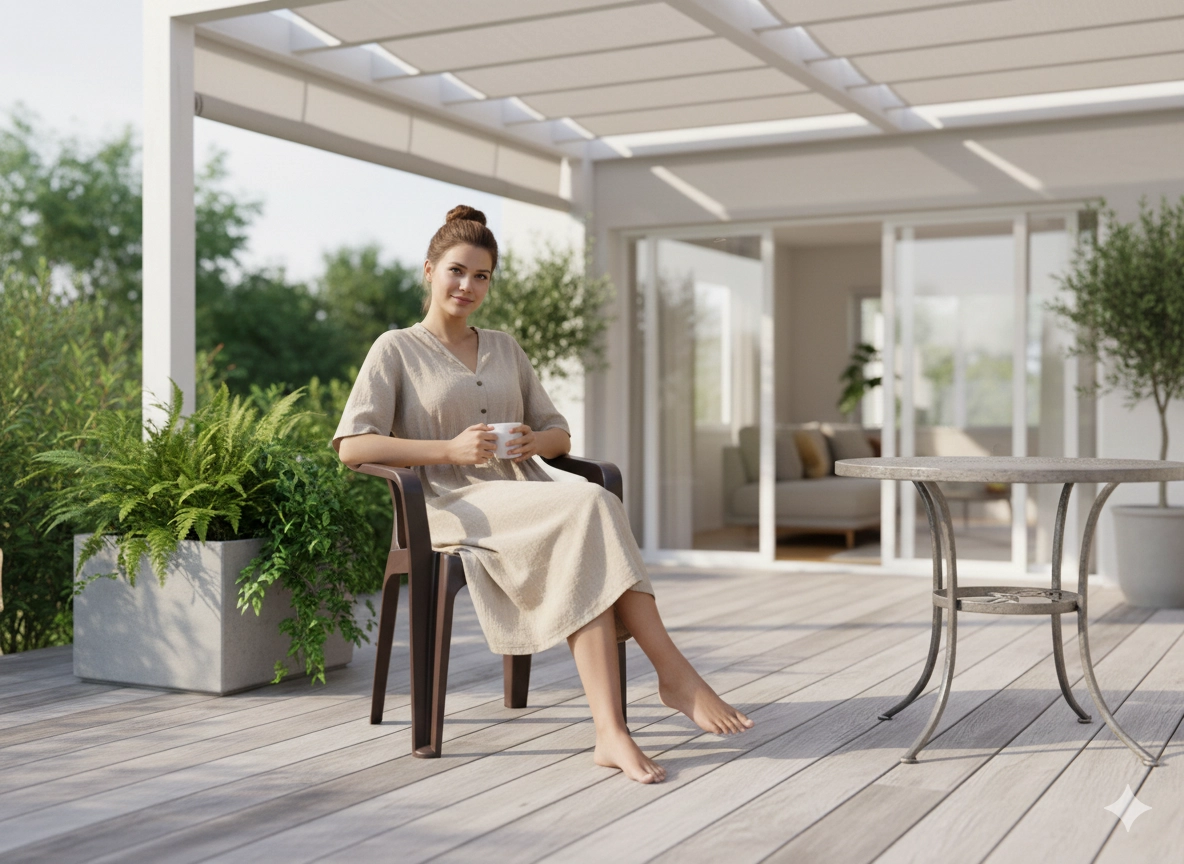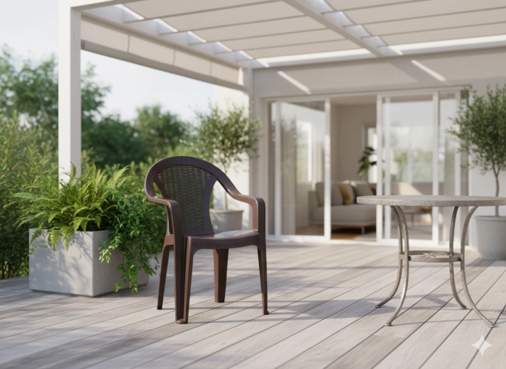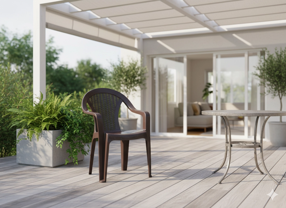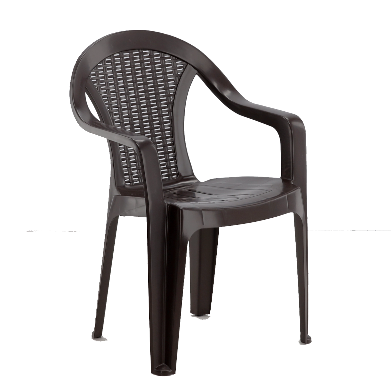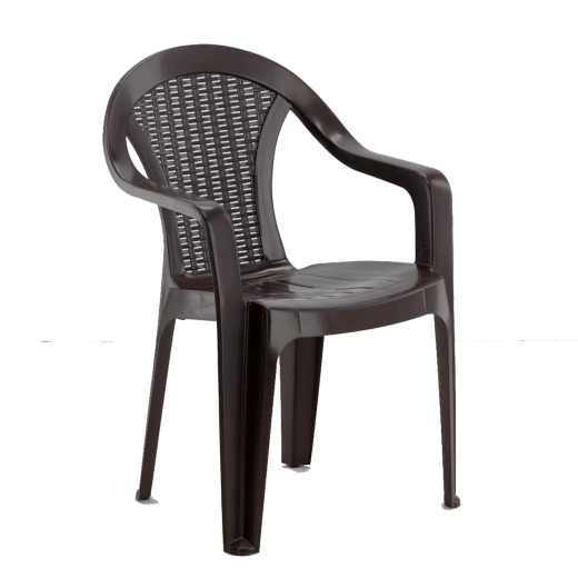 Vytvorte si útulné posedenie na záhrade, terase alebo balkóne. Toto hnedé plastové kreslo kombinuje klasický dizajn s odolnými materiálmi a každodenným komfortom. Vďaka pevnej štvornohej konštrukcii je stabilné, no zároveň zostáva ľahké a ľahko prenosné.
