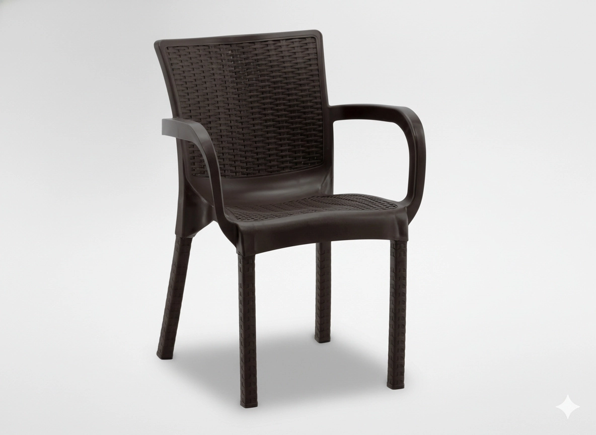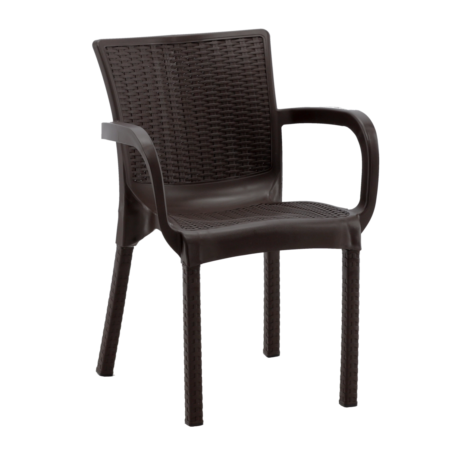 Elegantné kreslo v hnedom odtieni spája nadčasový ratanový dizajn s praktickosťou moderných materiálov. Perforované operadlo a sedadlo zabezpečujú vetranie a rýchle schnutie, takže je ideálne na každodenný relax aj posedenie s priateľmi.