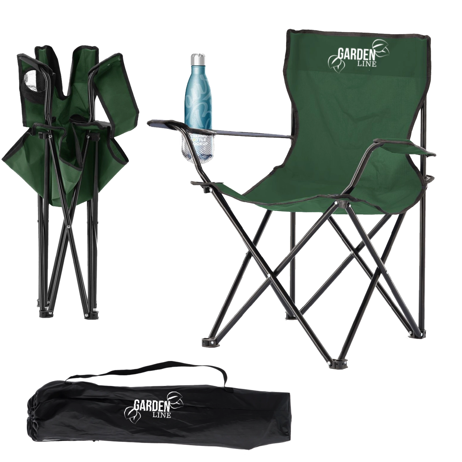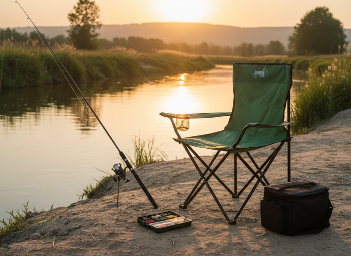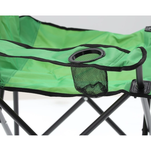 Podrúčky s integrovaným držiakom na nápoj a odolný sedák 600D Oxford poskytujú komfort pri rybárčení, kempovaní aj odpočinku v prírode.