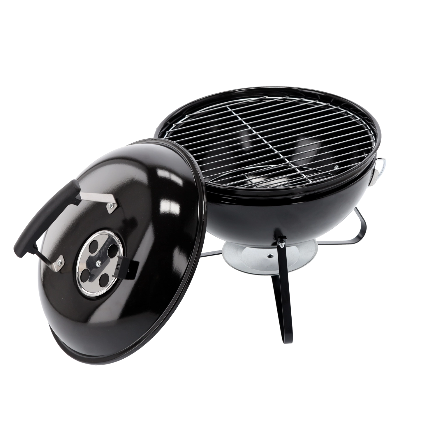Tri oceľové nohy zaisťujú stabilitu a miska na popol uľahčuje čistenie po grilovaní.