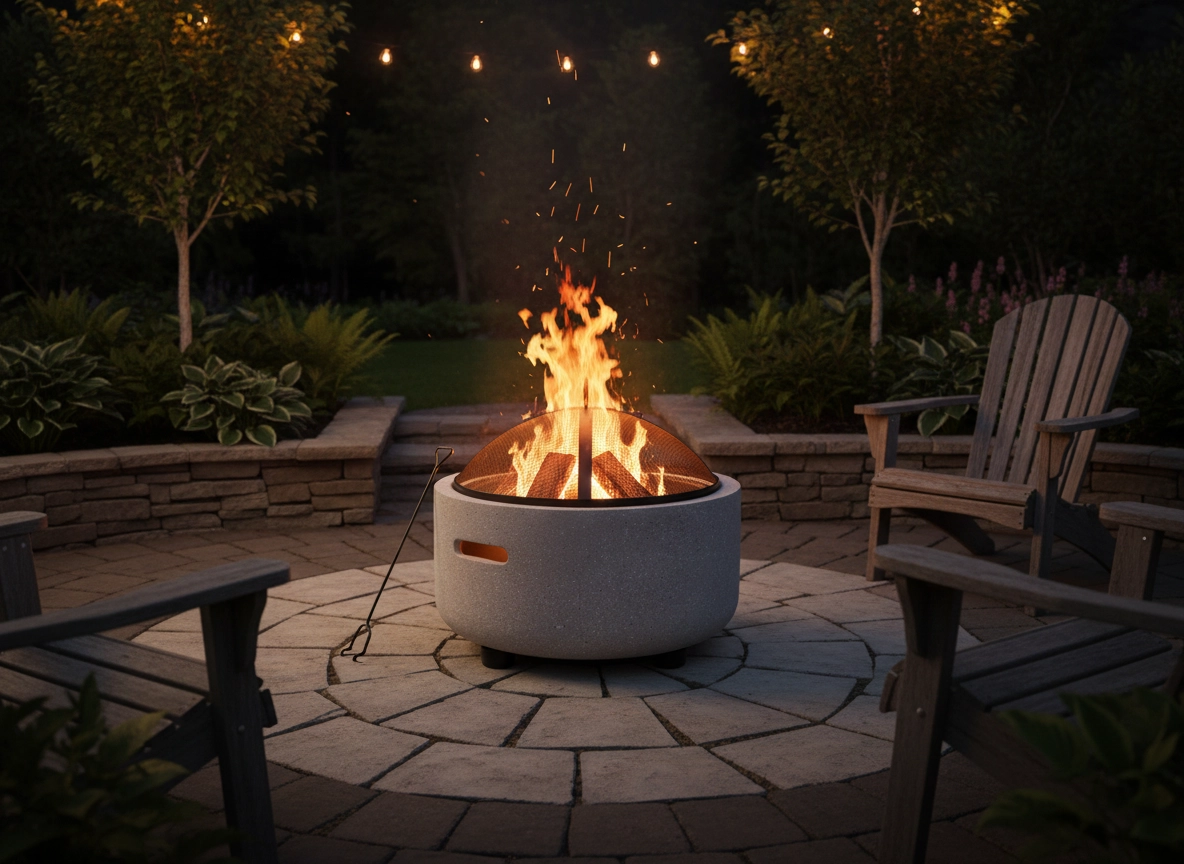 Užite si atmosféru plápolajúceho ohňa na terase alebo záhrade. Moderné ohnisko s misou z odolného MgO v decentnej sivej farbe skvele zapadne do každého exteriéru a poskytne stabilnú a bezpečnú prevádzku. Oceľová iskrová kupola chráni pred odlietavaním iskier a kutáč uľahčuje manipuláciu s polienkami.