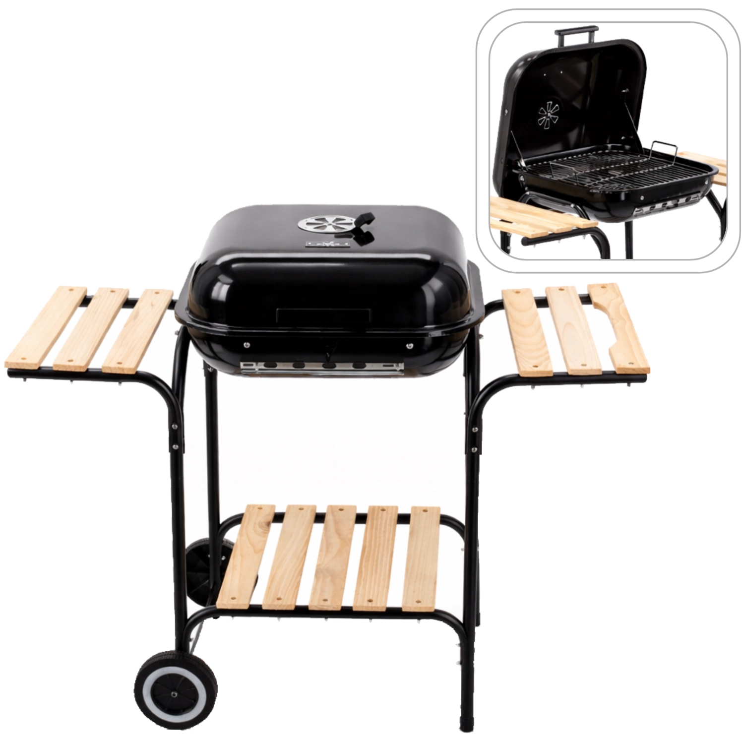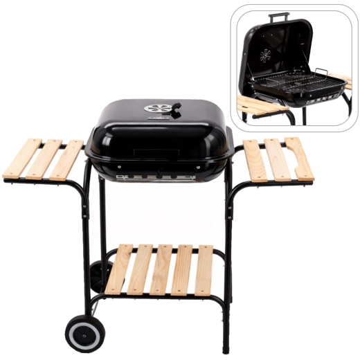 Užite si autentickú chuť grilovania s priestranným uhoľným grilom, ktorý kombinuje stabilitu, mobilitu a skvelé výsledky. Vďaka dvom bočným policiam máte všetky suroviny aj náradie vždy poruke, zatiaľ čo kolieska umožnia bez námahy presunúť gril tam, kde práve potrebujete.