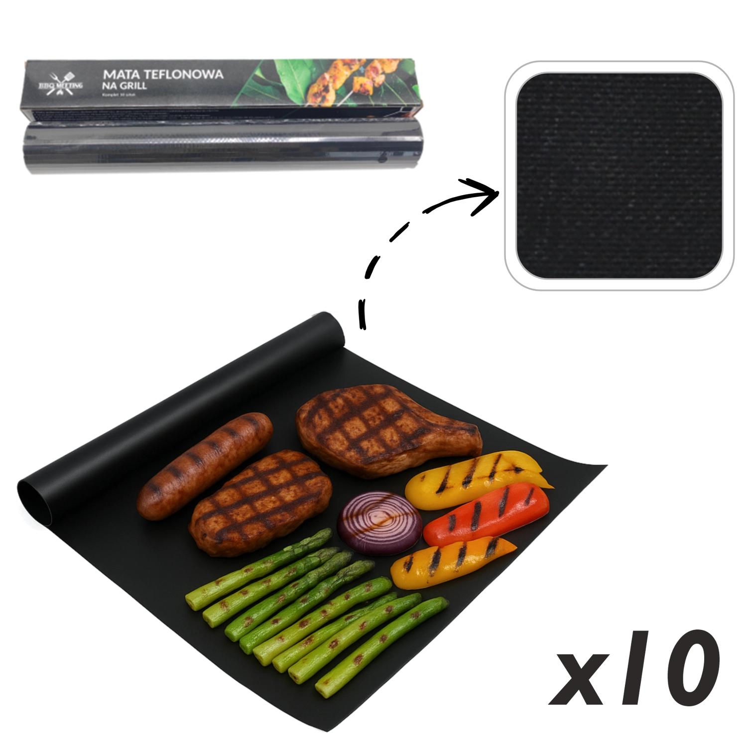 Podložka vytvorí jednoliatu grilovaciu plochu, na ktorej pohodlne pripravíte mäso, špízy aj zeleninu bez rizika prepadu a s perfektným prepečením.