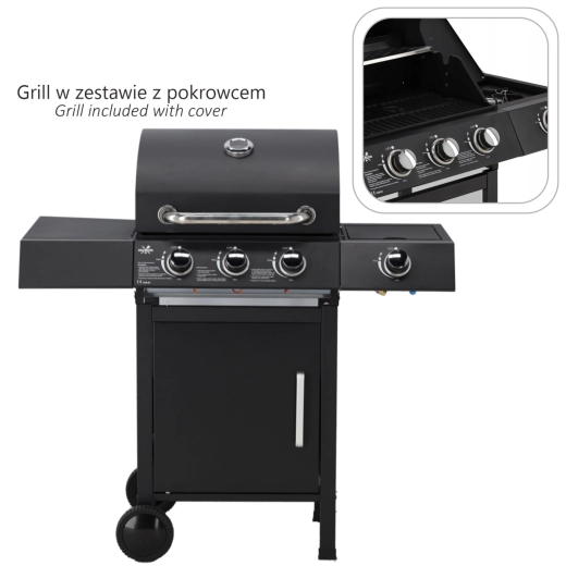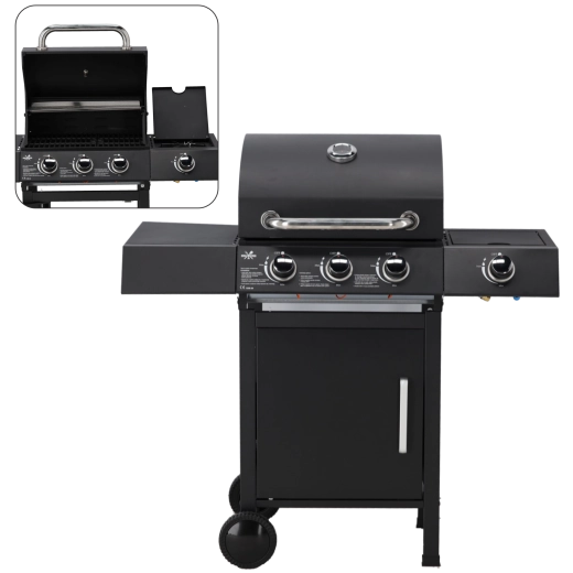 Užite si bezstarostné grilovanie s plynovým grilom s výkonom 10,3 kW, 3 hlavnými horákmi a bočným horákom. Vďaka rýchlemu nahriatiu, priestrannej grilovacej ploche a dodávanému regulátoru s hadicou začnete grilovať hneď po vybalení. Robustné veko s teplomerom, praktické odkladacie plochy a kolieska na ľahký presun robia z tohto grilu ideálnu voľbu na záhradné párty aj rodinné večere.