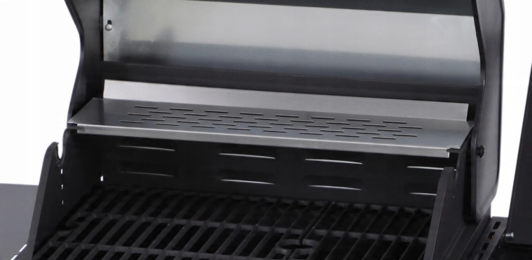 Dva smaltované rošty a nerezový ohrievací rošt poskytujú dosť miesta pre celé menu a ľahko sa čistia.