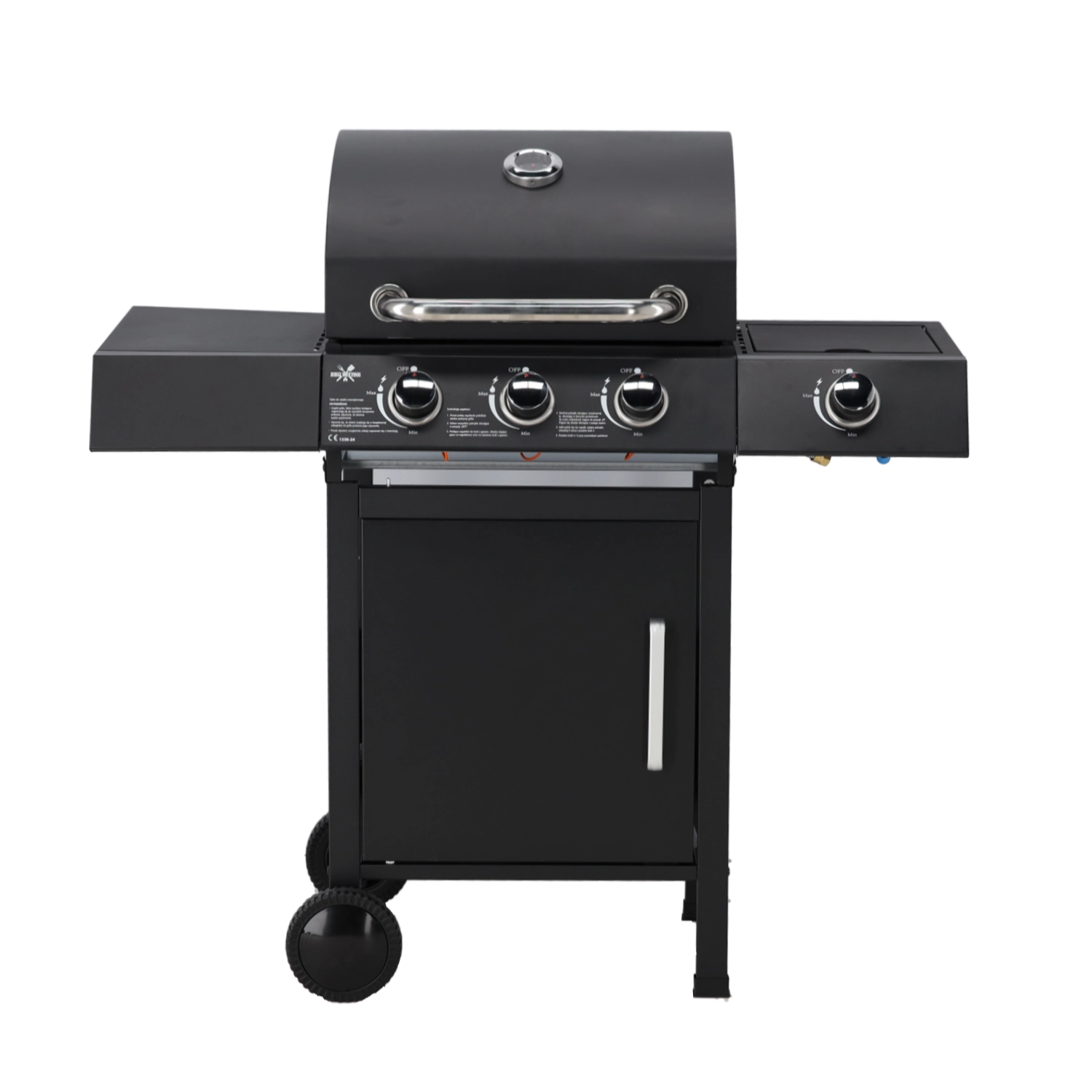 Grilujte bez kompromisov vďaka trom hlavným horákom pre rovnomerné teplo a samostatnému bočnému horáku na omáčky či prílohy.
