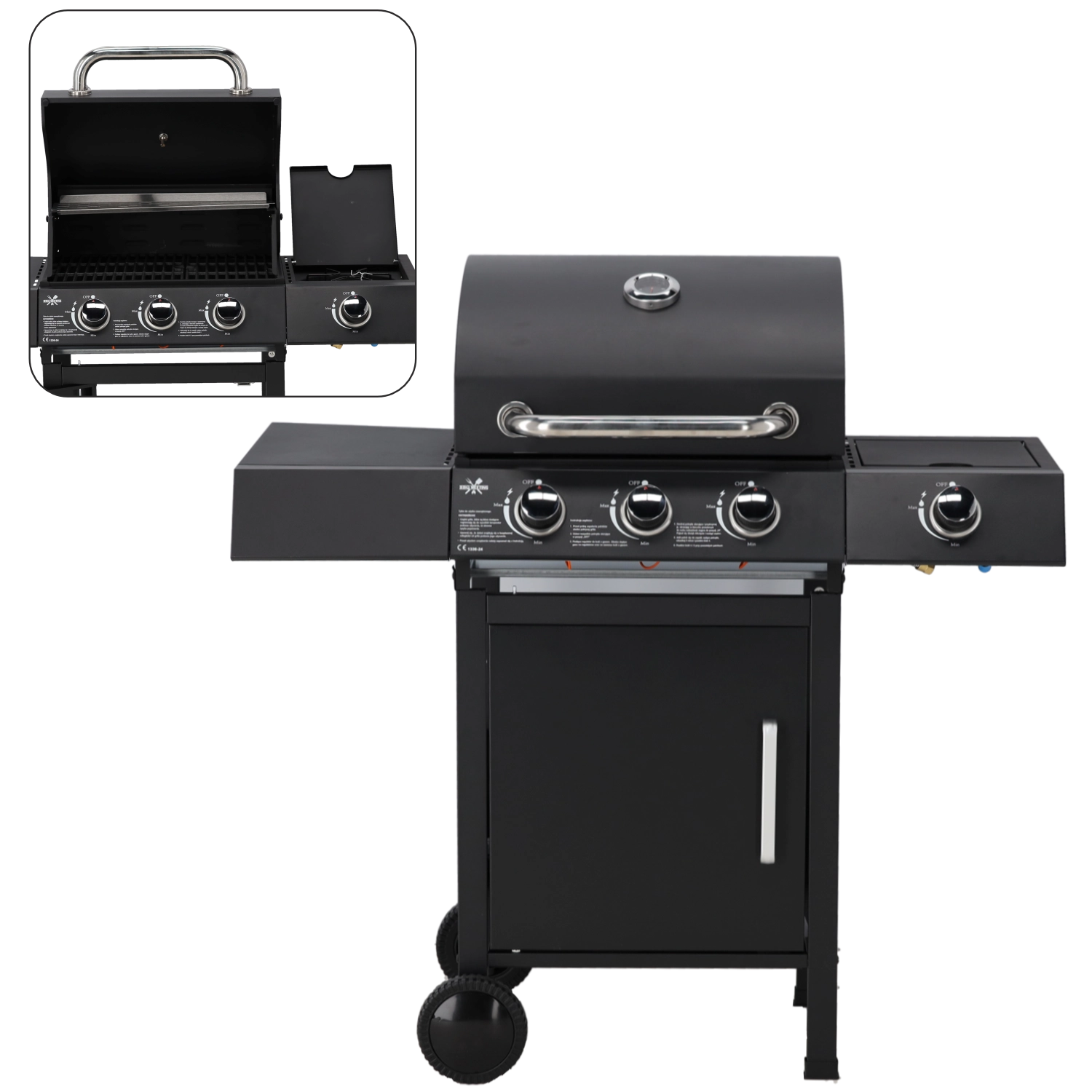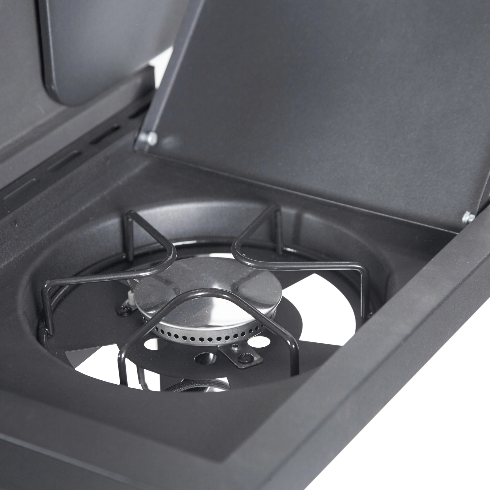 Masívne veko s odolnou práškovou úpravou pomáha držať stabilnú teplotu a integrovaný teplomer uľahčuje kontrolu pre dokonalé výsledky. Stabilná konštrukcia s úložným priestorom a dvoma transportnými kolieskami zaistí pohodlnú manipuláciu. V balení nájdete regulátor tlaku a plynovú hadicu, takže môžete začať ihneď.