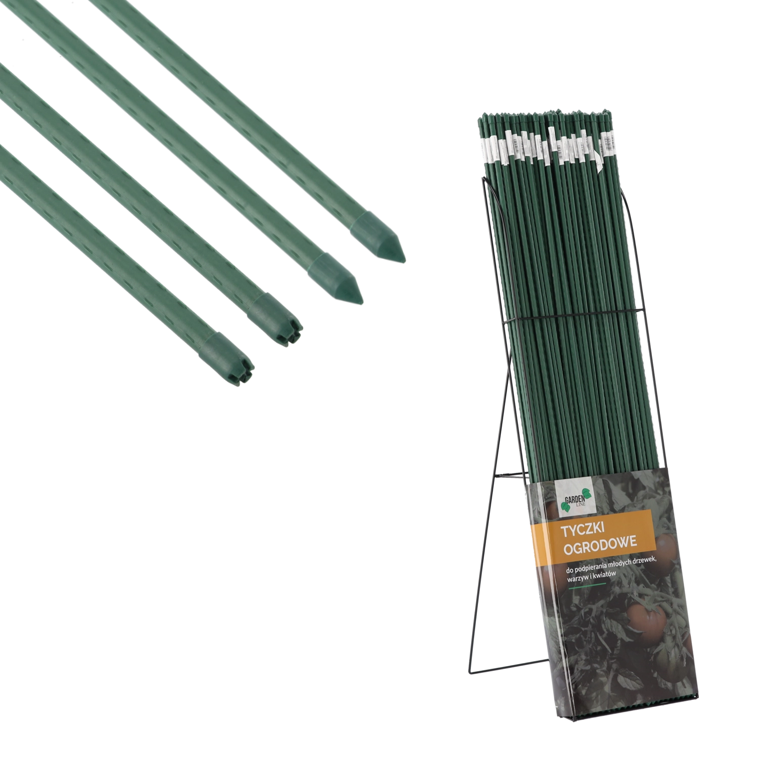 Táto povlakovaná oceľová tyč je ideálnou oporou pre popínavé rastliny, kríky, jemné kvety aj plodovú zeleninu. Zaostrený koniec uľahčuje zapichnutie do pôdy a drobné výstupky po celej dĺžke bránia vykĺznutiu. Vďaka kvalitnému kovovému jadru a PE povlaku je tyč vysoko odolná voči poškodeniu a poveternosti, pričom svojím zeleným prevedením prirodzene splýva s výsadbou.