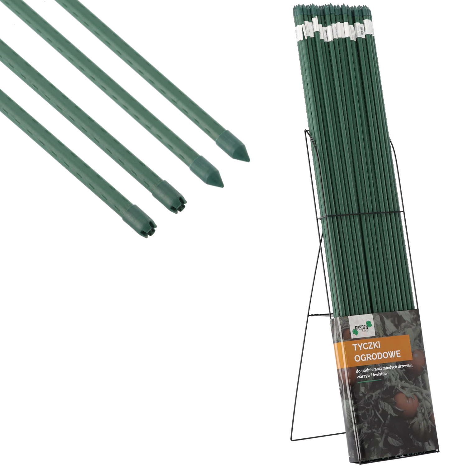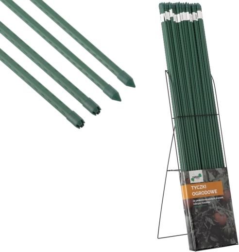Táto poťahovaná tyč je ideálna na podporu popínavých rastlín, krov, jemných kvetov aj zeleniny a ovocných rastlín. Kovové jadro dodáva pevnosť, polyetylénový povrch chráni pred koróziou a vlhkosťou. Súčasťou je oceľový stojan, ktorý rozširuje možnosti ukotvenia a usporiadania v záhone či v skleníku.