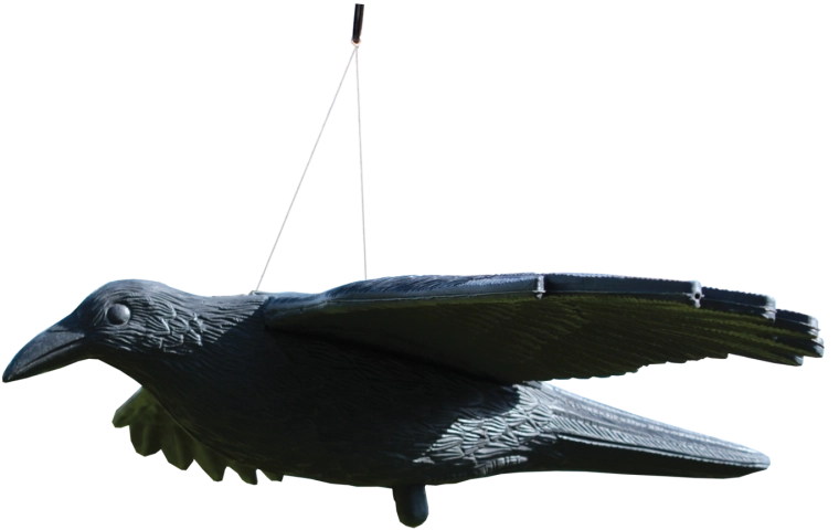 Veľký odstrašovač vtákov v tvare krkavca účinne chráni záhrady, sady, terasy a balkóny. Vďaka realistickému vzhľadu a impozantným rozmerom napodobňuje prítomnosť predátora, čím odrádza holuby, škorcov aj vrabce. Vyrobený z odolného plastu, vhodný pre väčšie otvorené plochy.