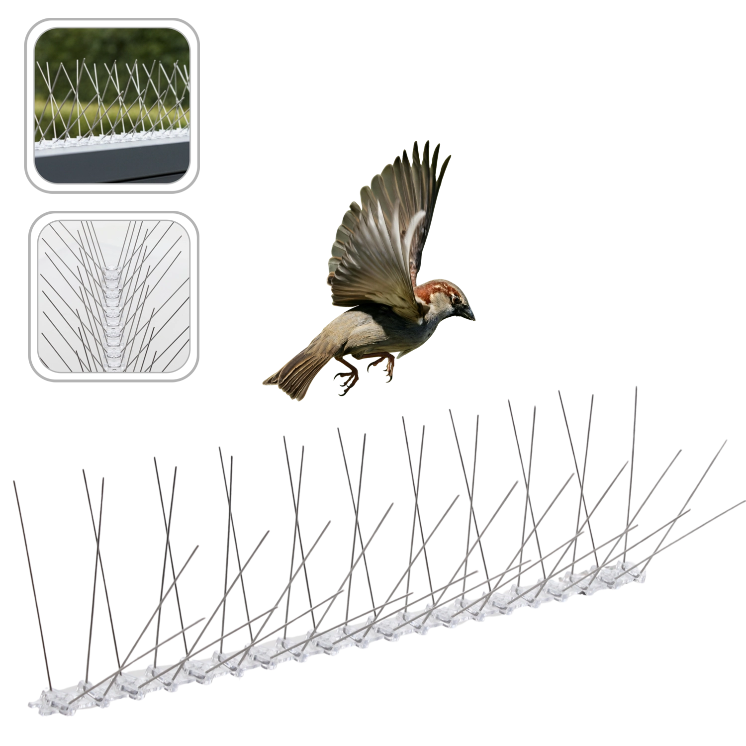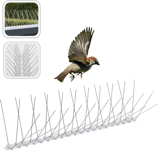 Chráňte svoju nehnuteľnosť pred nečistotami a poškodením spôsobeným vtákmi pomocou efektívnych hrotov s elastickým základom. Jednoduchá inštalácia a univerzálne použitie z nich robí ideálnu voľbu pre okraje striech, rímsy, parapety aj zábradlia. Bezpečné pre vtáky – bránia dosadnutiu, nie ublíženiu.
