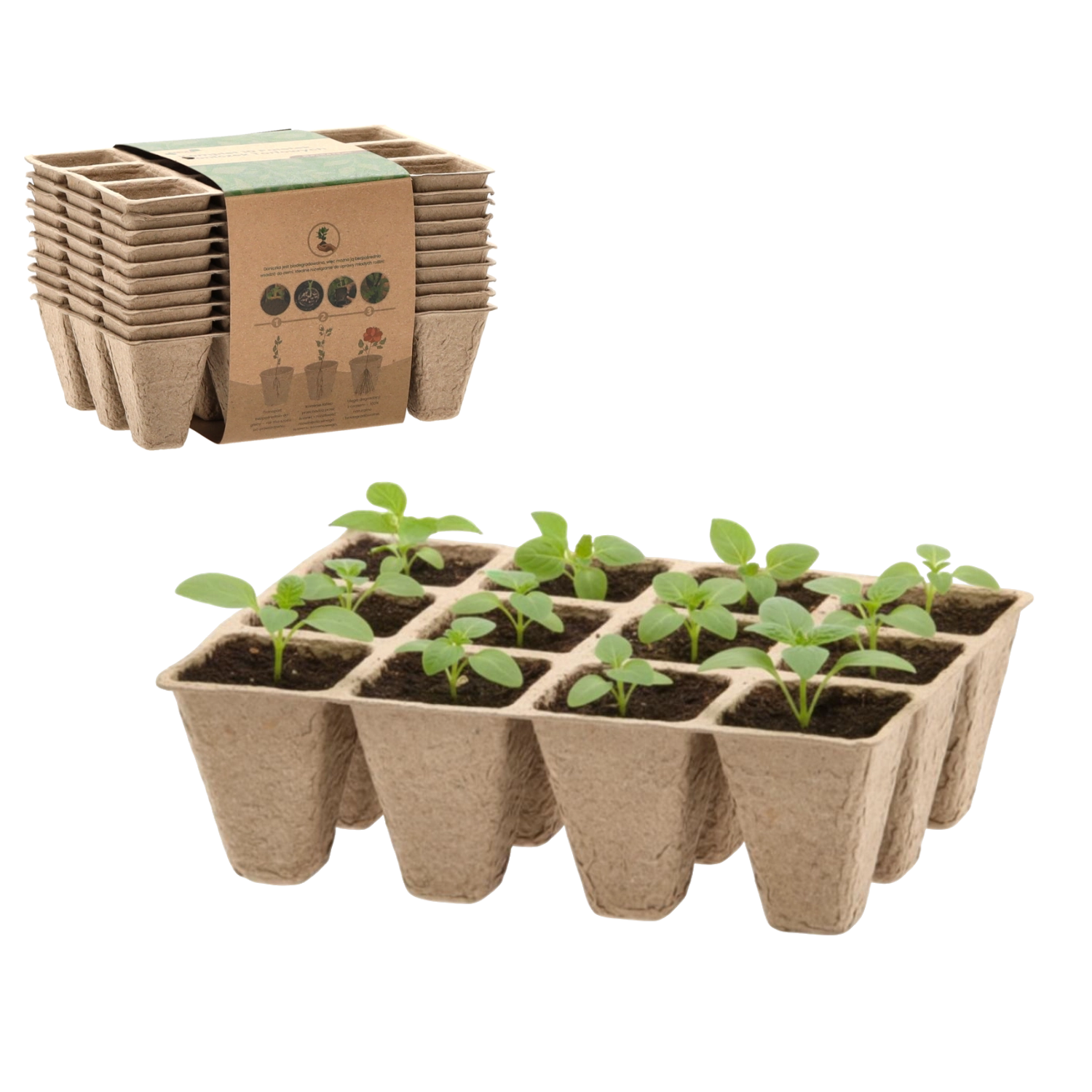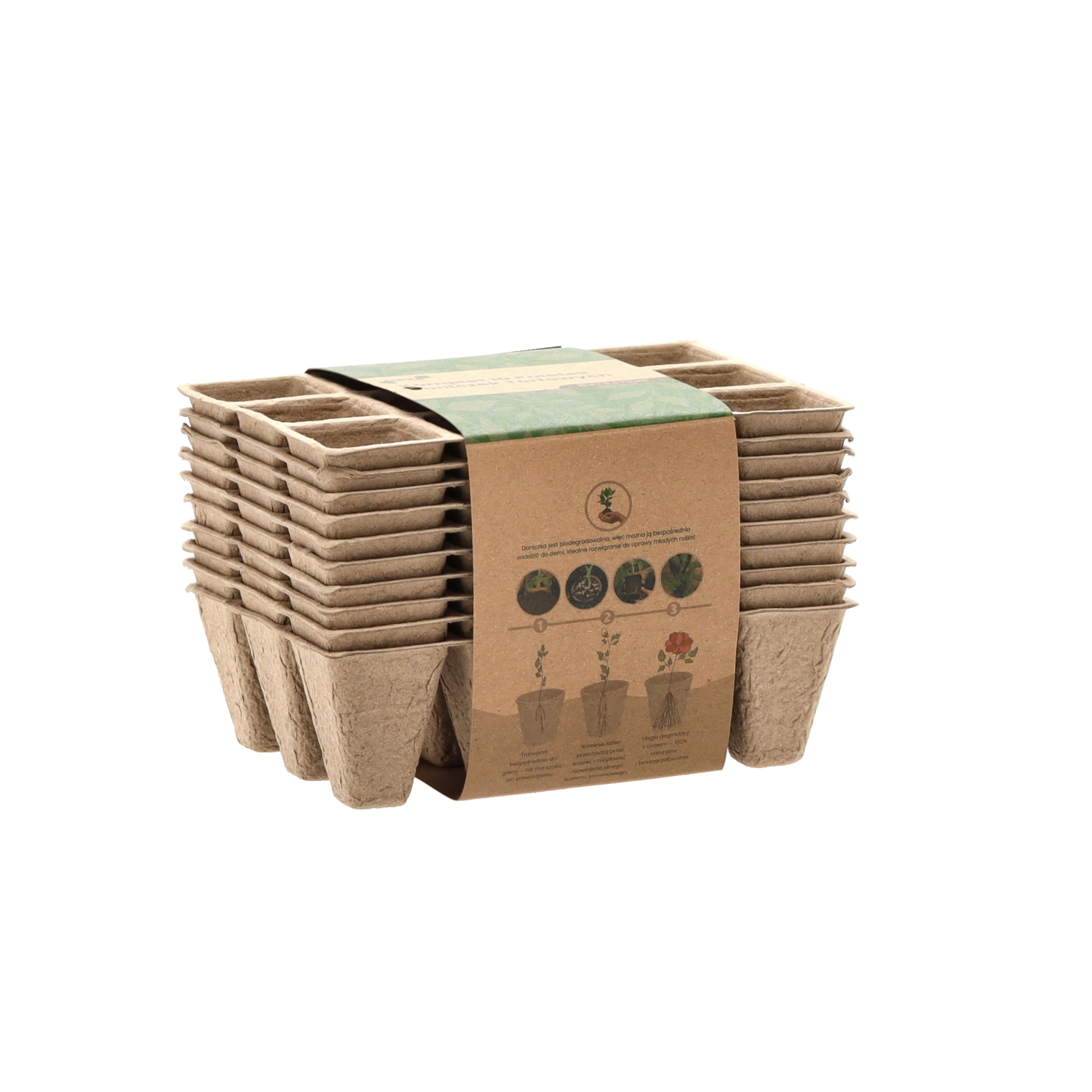 Vyrobené z lisovanej papierovej/rašelinovej hmoty, ktorá sa v pôde postupne rozkladá a je šetrná k životnému prostrediu. To znamená menej plastu v záhrade a zdravší štart pre vaše rastliny. Kompaktné rozmery sa hodia do domácich mini skleníkov, parenísk aj fóliovníkov.