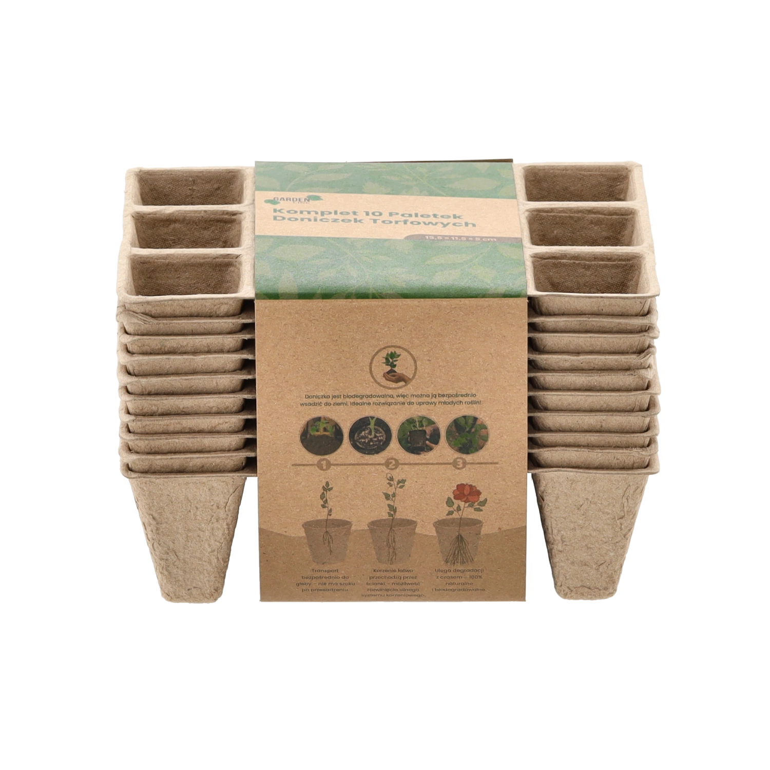 Sada 10 rašelinových sadbovacích plat s kvetináčikmi 15,5 × 11,5 × 5 cm