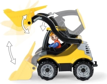 Predná lyžica sa ľahko dvíha a vyklápa, takže deti môžu naberať a presýpať piesok či kocky ako skutočný nakladač.