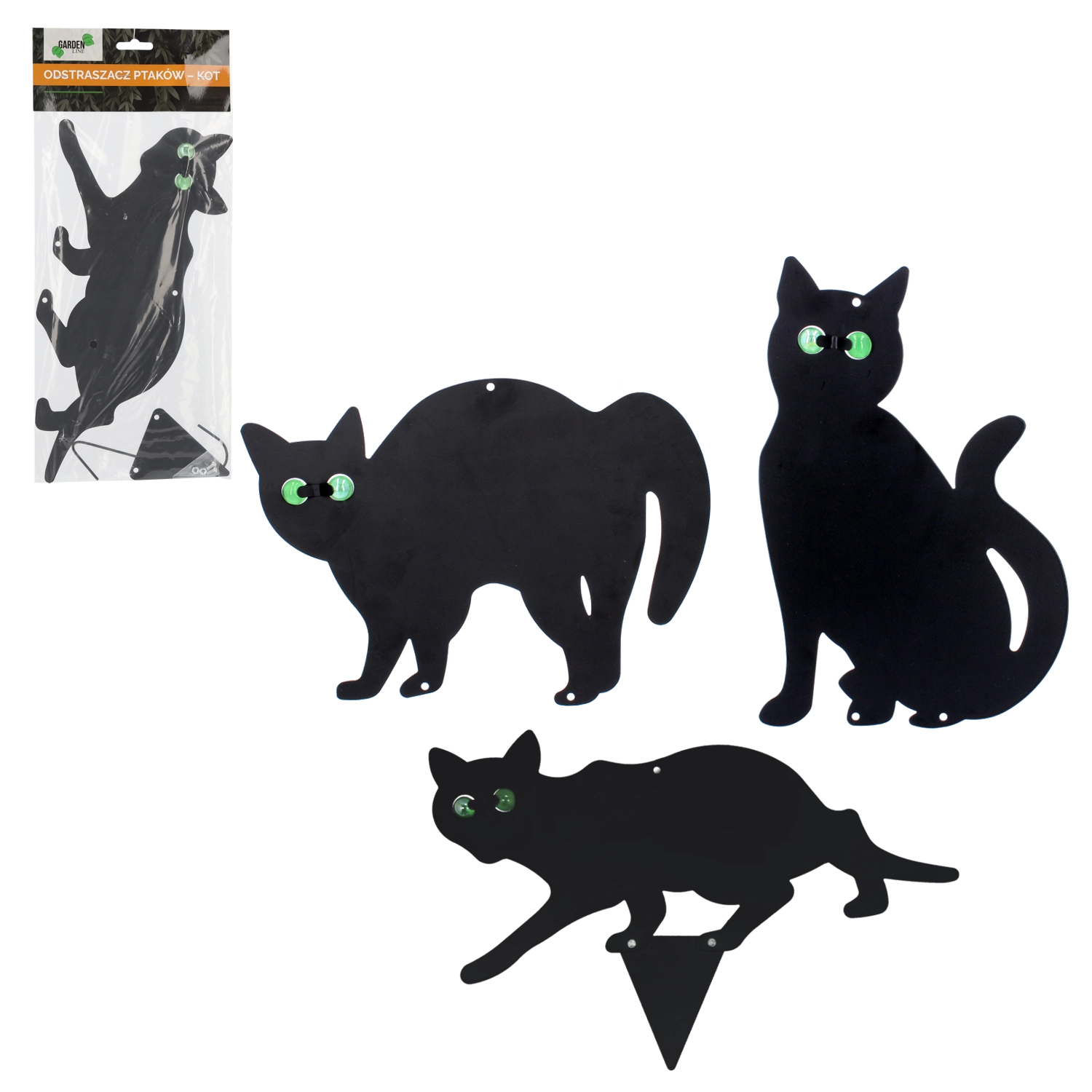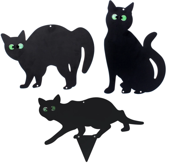 Estetický a funkčný doplnok pre vonkajšie priestory. Dekoratívna mačka napodobňuje prirodzeného predátora, takže vtáky a hlodavce sa vašim sadeniciam a úrode radšej vyhnú. Sklenené oči vytvárajú na slnku odlesky a pri vetre sa otáčajú, čo zvyšuje vizuálny efekt odstrašenia bez použitia chémie.