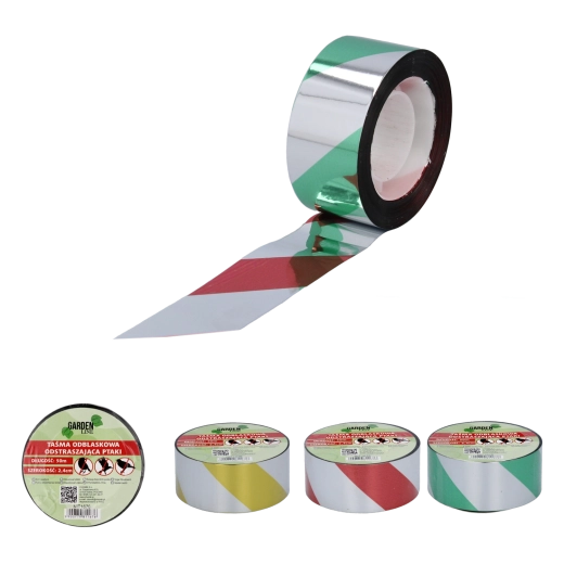 Reflexná páska odpudzuje vtáky kombináciou svetelných odleskov a vizuálneho pohybu, čo vtáky dezorientuje a odrádza od pristávania. Je ideálna na ochranu ovocných stromov, záhonov, viníc, ale aj balkónov a teras.