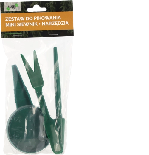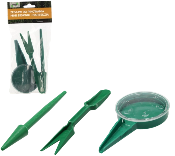 Praktická sada na pikírovanie a výsev obsahuje minisičovač a mini nástroje, ktoré uľahčia presádzanie sadeníc, výsev semien aj tvorbu otvorov v substráte. Vyrobená z kvalitného odolného plastu, vďaka ktorému je ľahká, trvácna a pohodlná na prácu s jemnými sadenicami bez zbytočného zašpinenia rúk.