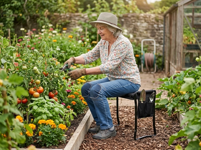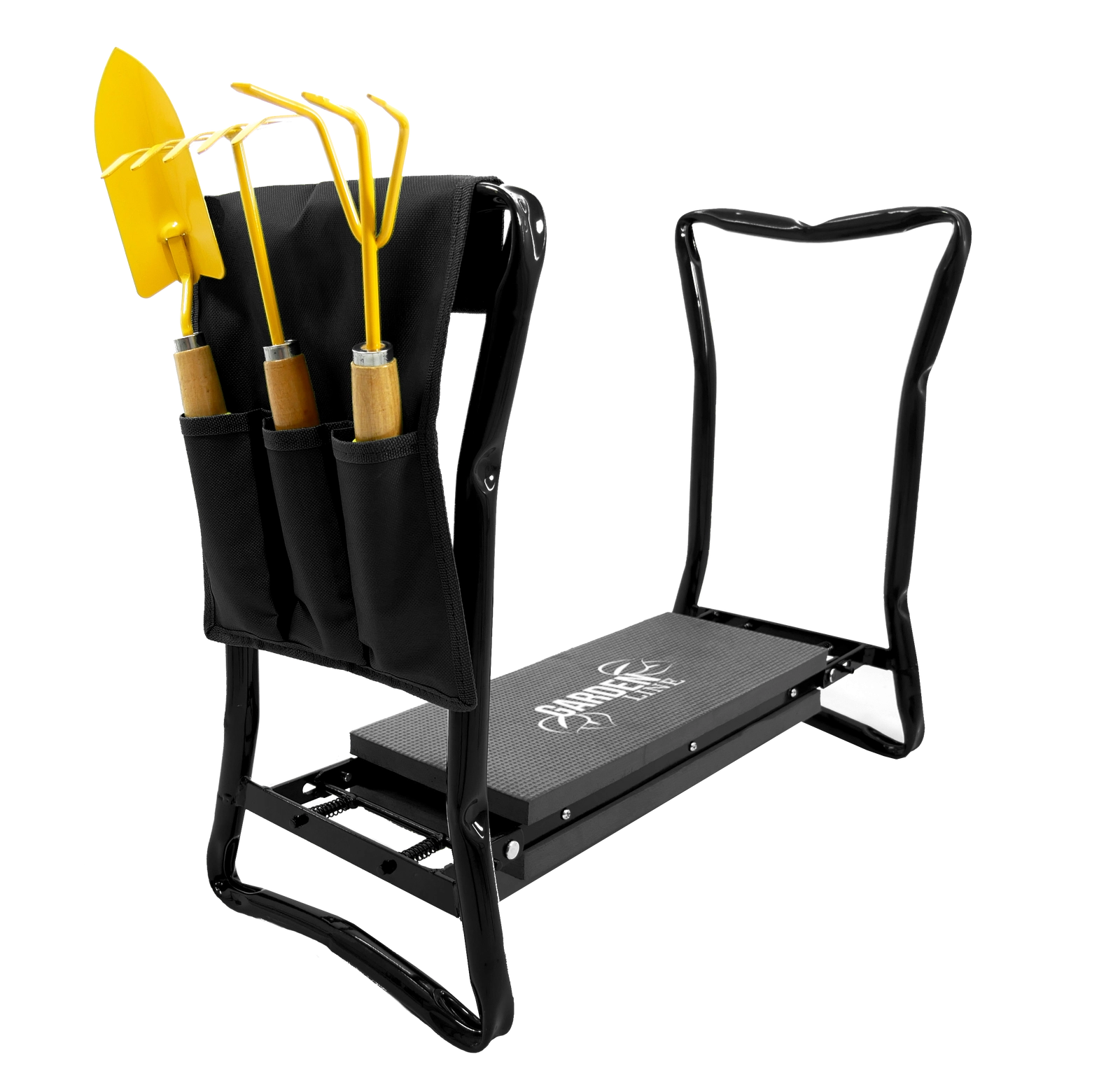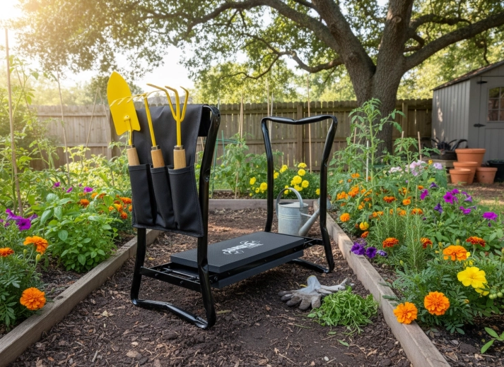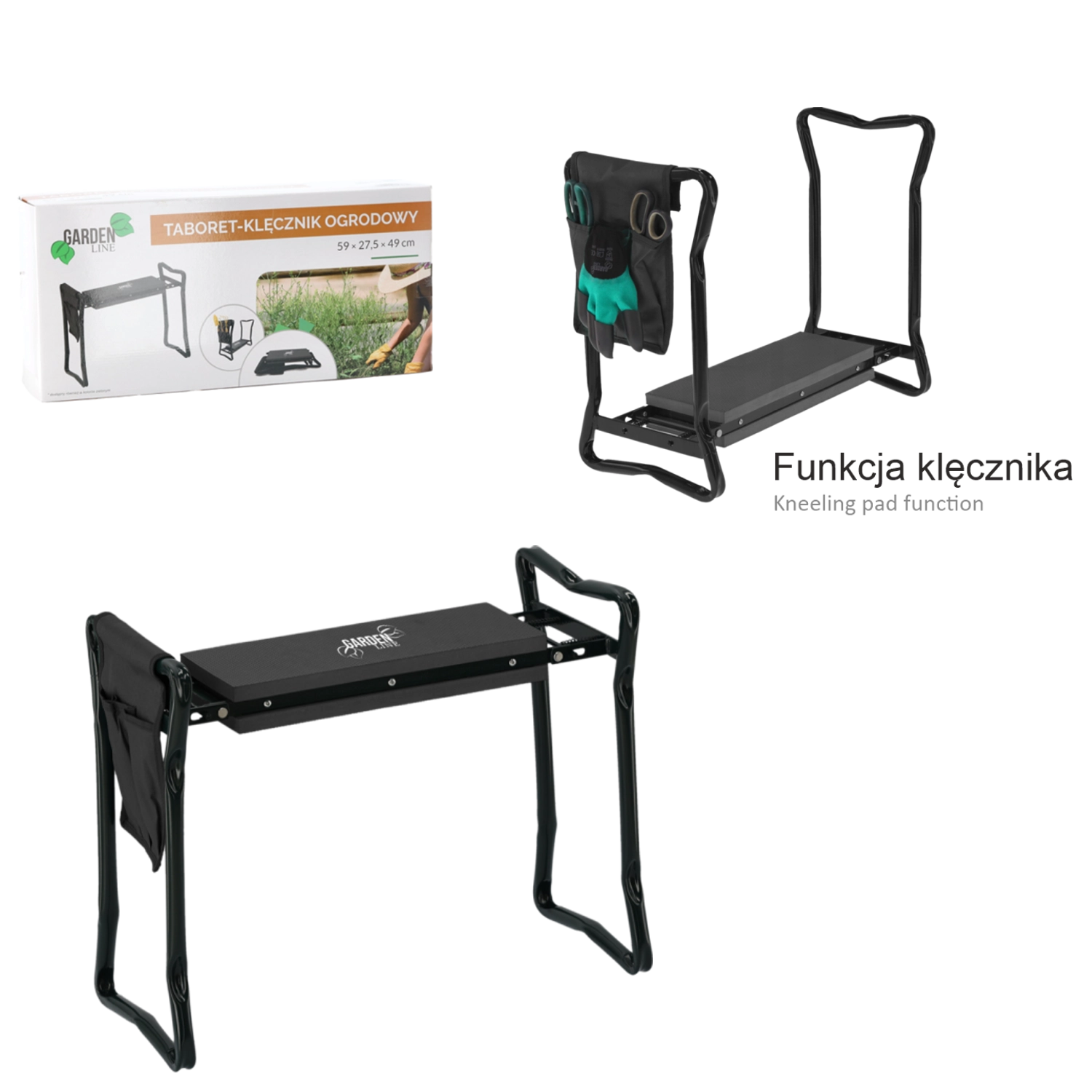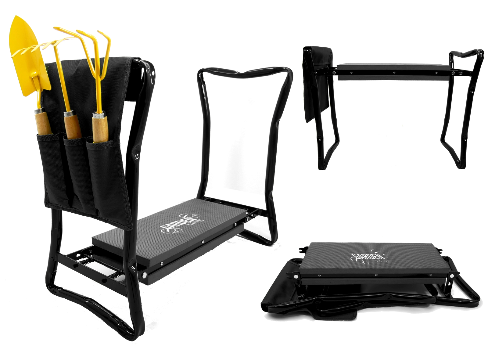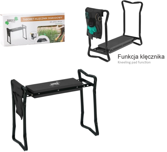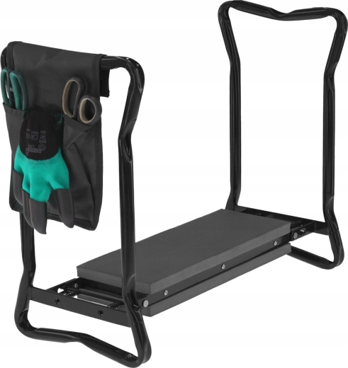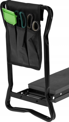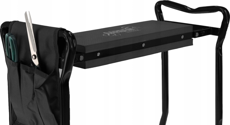 Bočný textilný kapsár udrží vaše nožnice, malé hrabličky či rukavice vždy po ruke. Vďaka skladacím nohám výrobok ľahko uložíte do garáže či auta a vezmete so sebou na záhradu, piknik alebo ryby. Kvalitné materiály (železo, EVA pena, Oxford tkanina) zaručujú dlhú životnosť a odolnosť pri každodennom používaní.