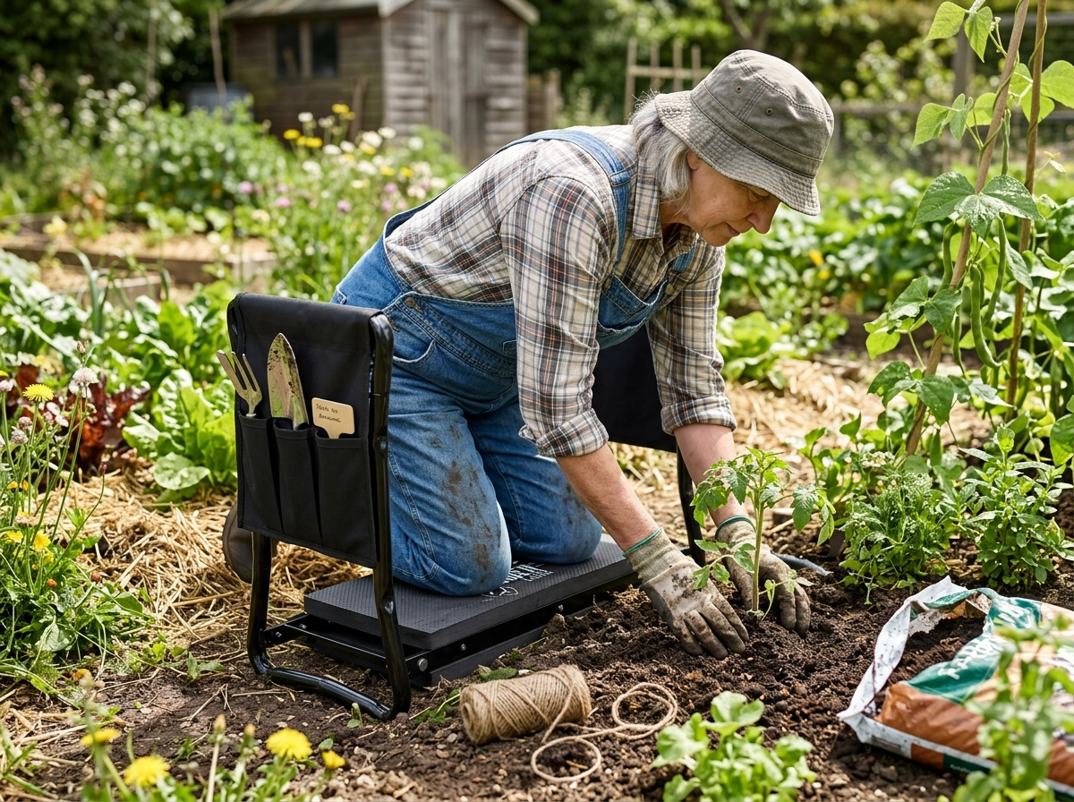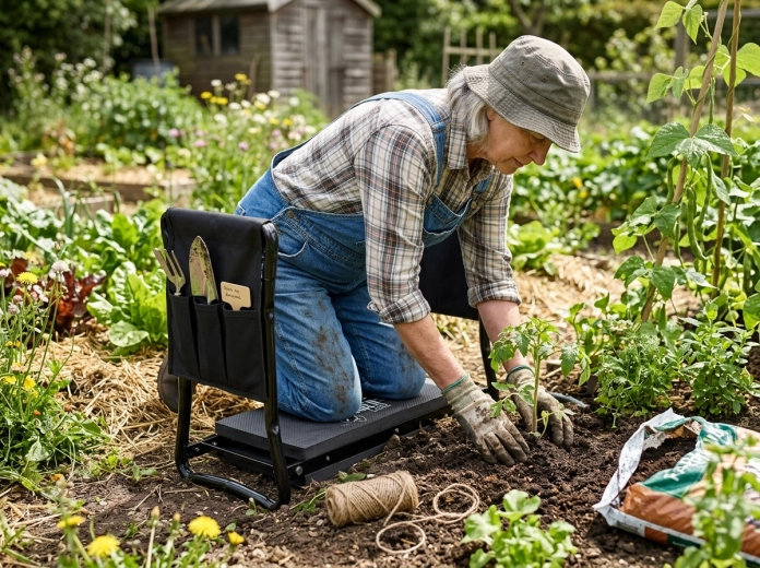 Polstrovaná EVA pena šetrí kolená a pevné madlá pomáhajú pri vstávaní. Maximálne pohodlie aj pri dlhšej práci.