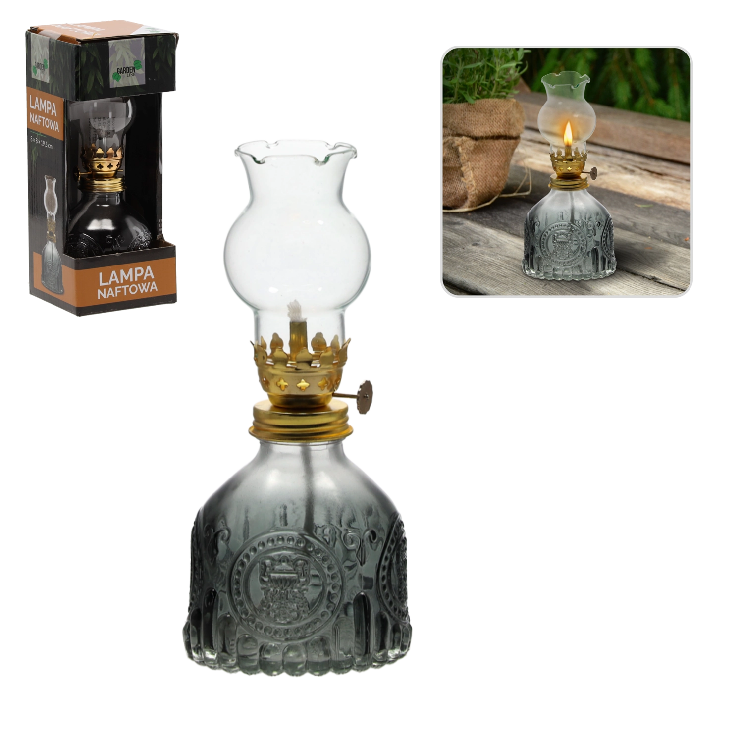 Objavte čaro tradičného osvetlenia. Sklenená petrolejová lampa kombinuje elegantný vzhľad s funkčným využitím. Je perfektná ako dekoratívny prvok do obývačky, spálne alebo na záhradu, kde navodí útulnú atmosféru s jemným, hrejivým svetlom.