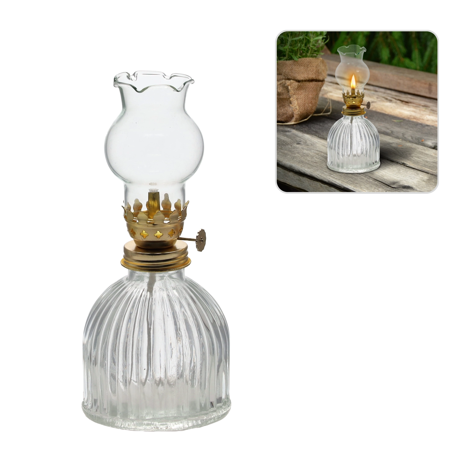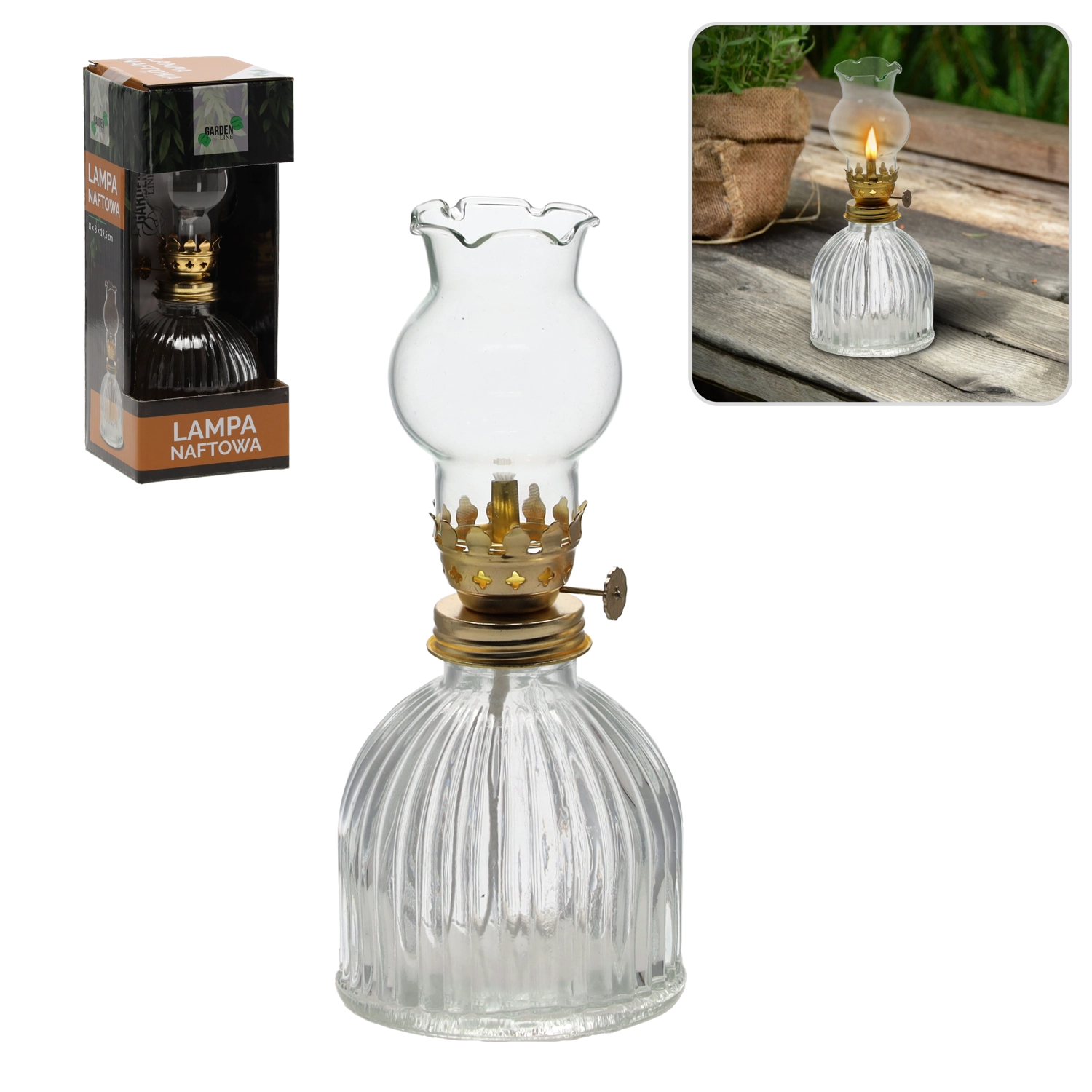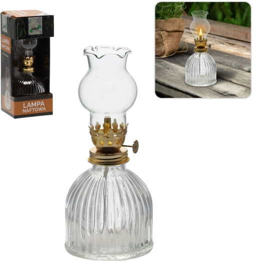 Táto elegantná petrolejová lampa v klasickom prevedení sa stane ozdobou každej miestnosti. Sklenené telo a bavlnený knôt vytvárajú stabilný, príjemne teplý plameň, ktorý navodí útulnú atmosféru doma aj vonku. Je ideálna na chvíle pohody, romantické večery alebo ako dekoratívny doplnok s praktickým využitím.