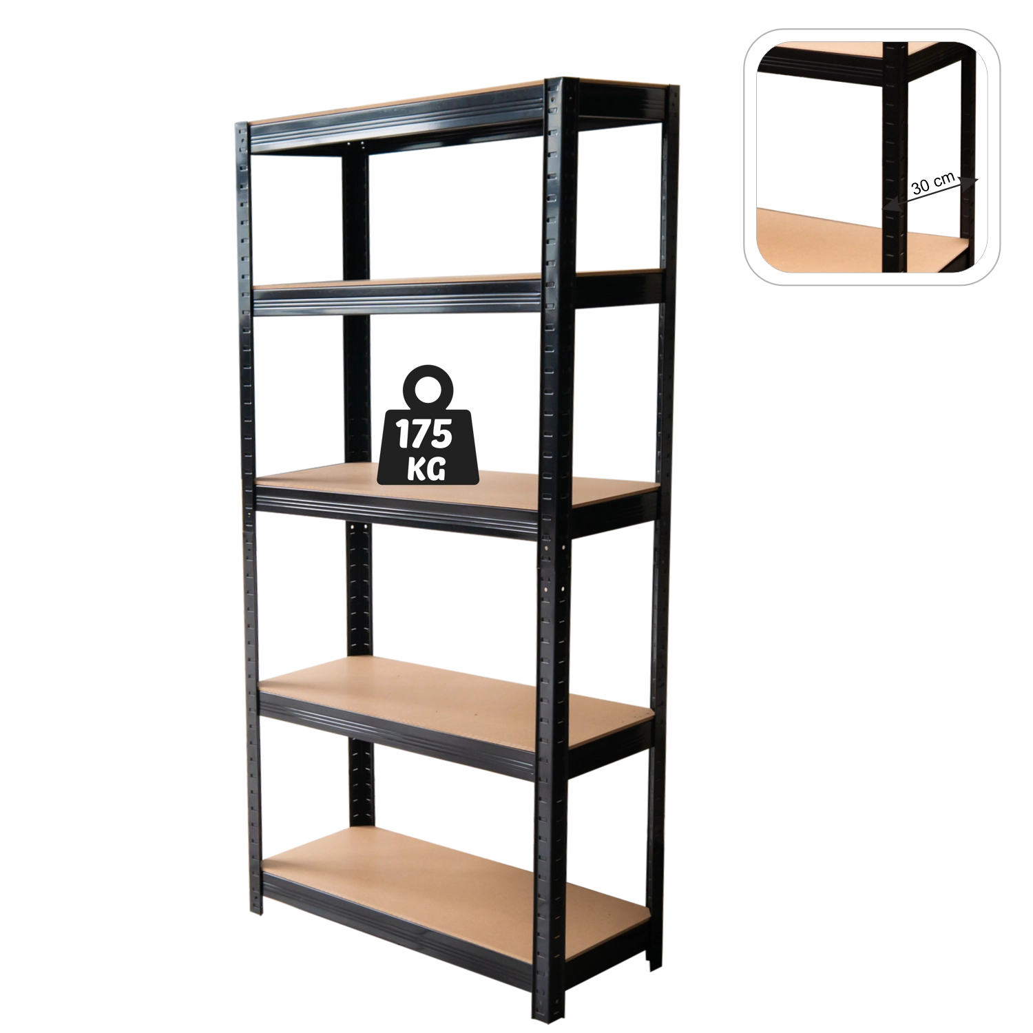 Hľadáte odolné a prehľadné riešenie pre skladovanie náradia, krabíc či materiálu? Tento kovový regál s 5 výškovo nastaviteľnými policami kombinuje pevnú oceľovú konštrukciu s odolnými HDF doskami. Vďaka čiernemu prevedeniu zapadne do modernej dielne, pivnice aj domáceho zázemia.