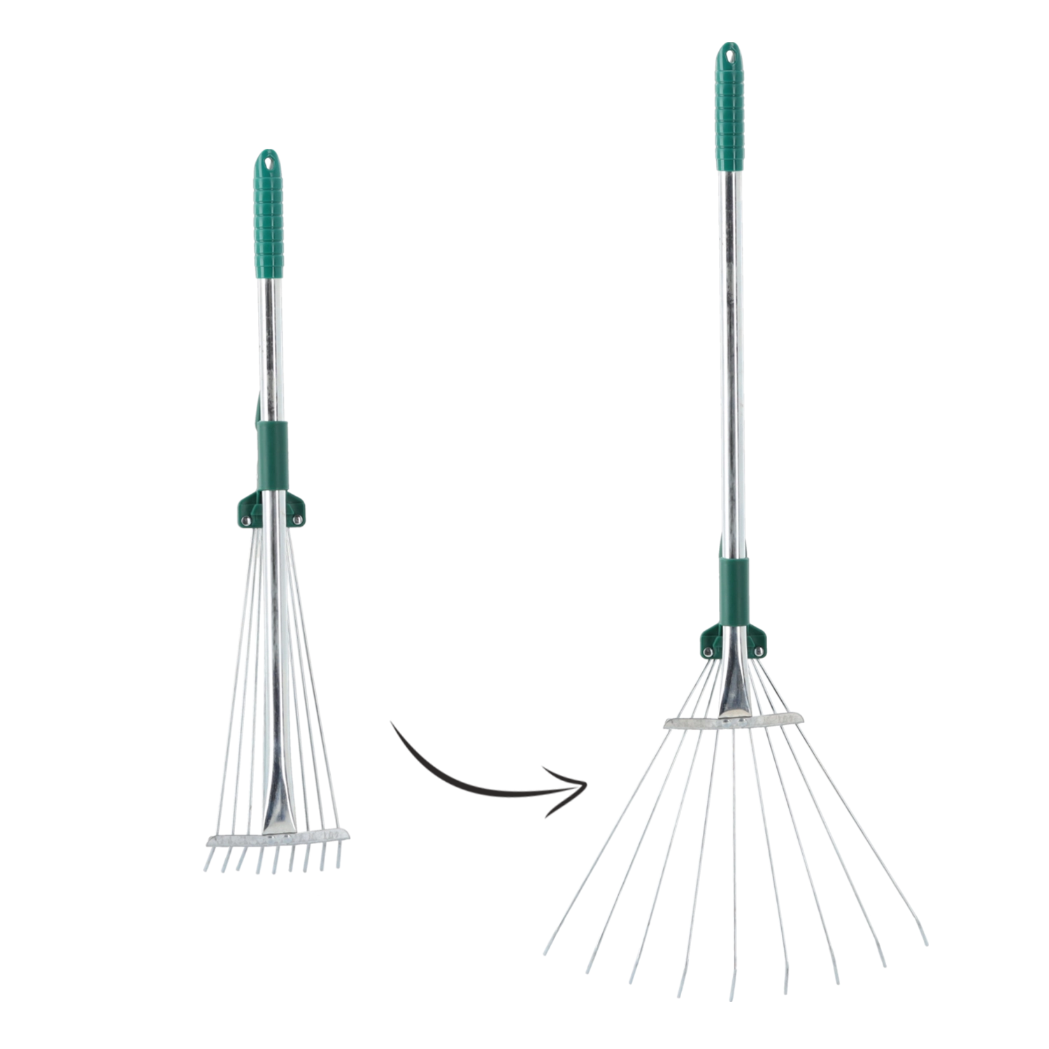 Regulovateľné vejárové hrable sú ideálnou voľbou na každodenné upratovanie záhrady. Nastaviteľná hlava s flexibilnými pružnými drôtmi umožňuje meniť šírku záberu pre presnú prácu v úzkych miestach alebo rýchle zhrabovanie na väčších plochách. Teleskopická rukoväť uľahčí manipuláciu a šetrí miesto pri skladovaní.